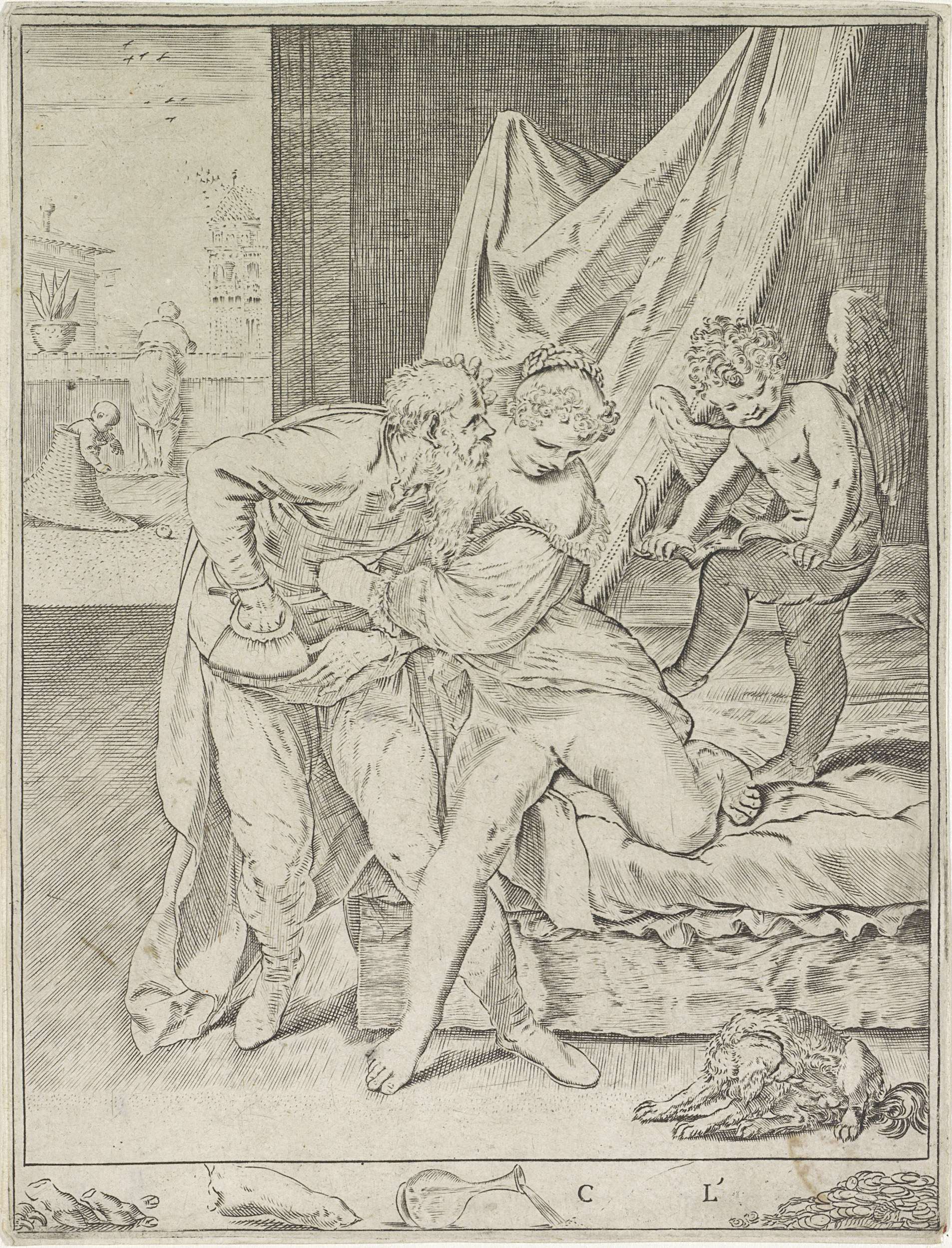 Oude man en een courtisane