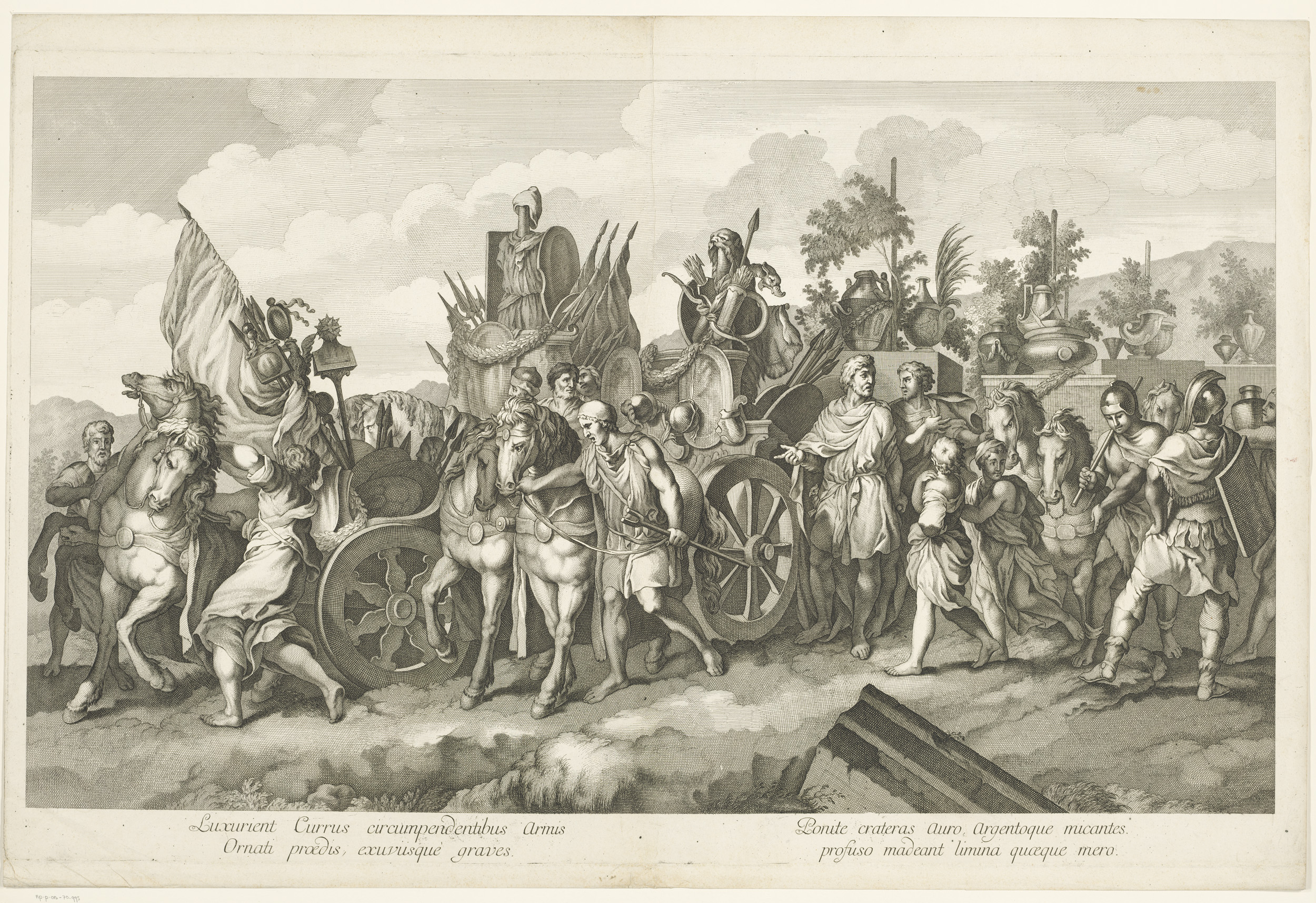MIlitaire stoet met oorlogsbuit op kar