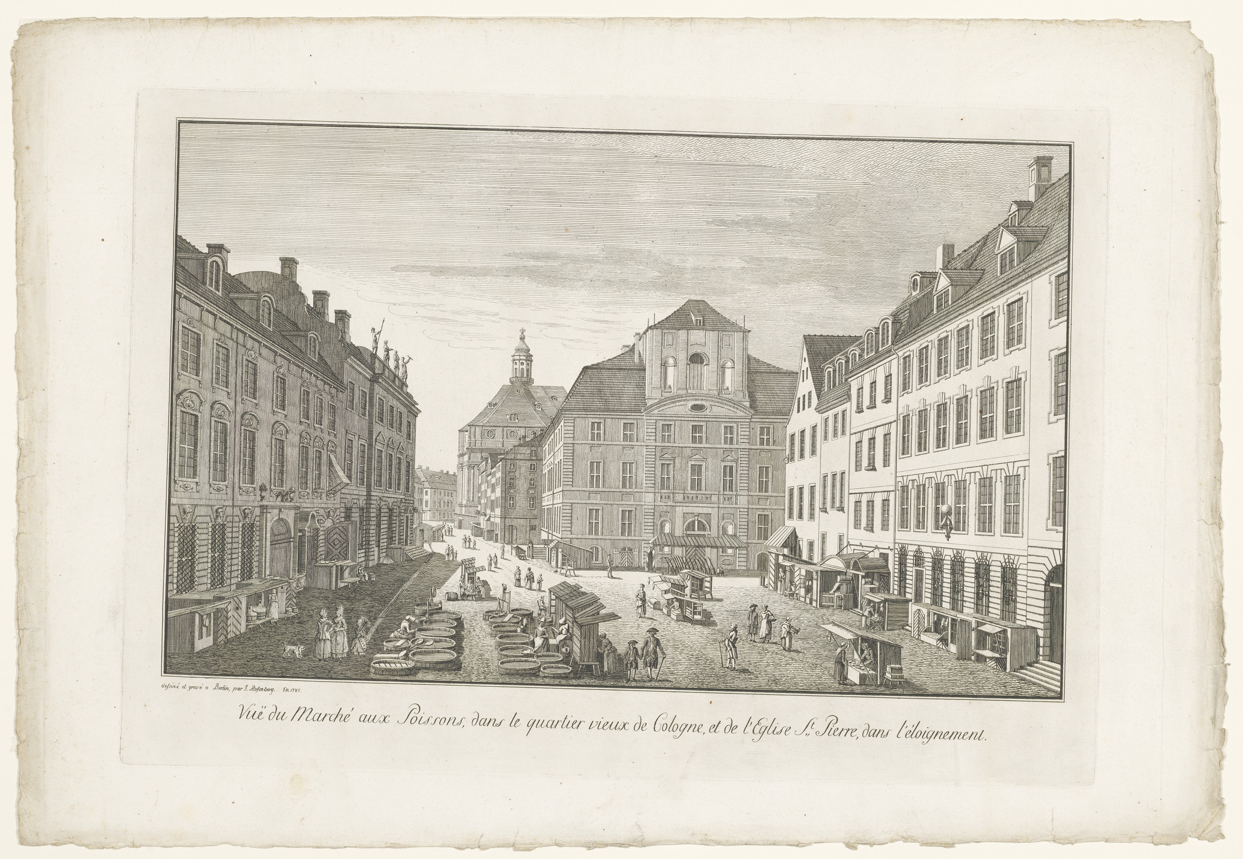 Gezicht op een vismarkt in Keulen met de Sint-Petrus...