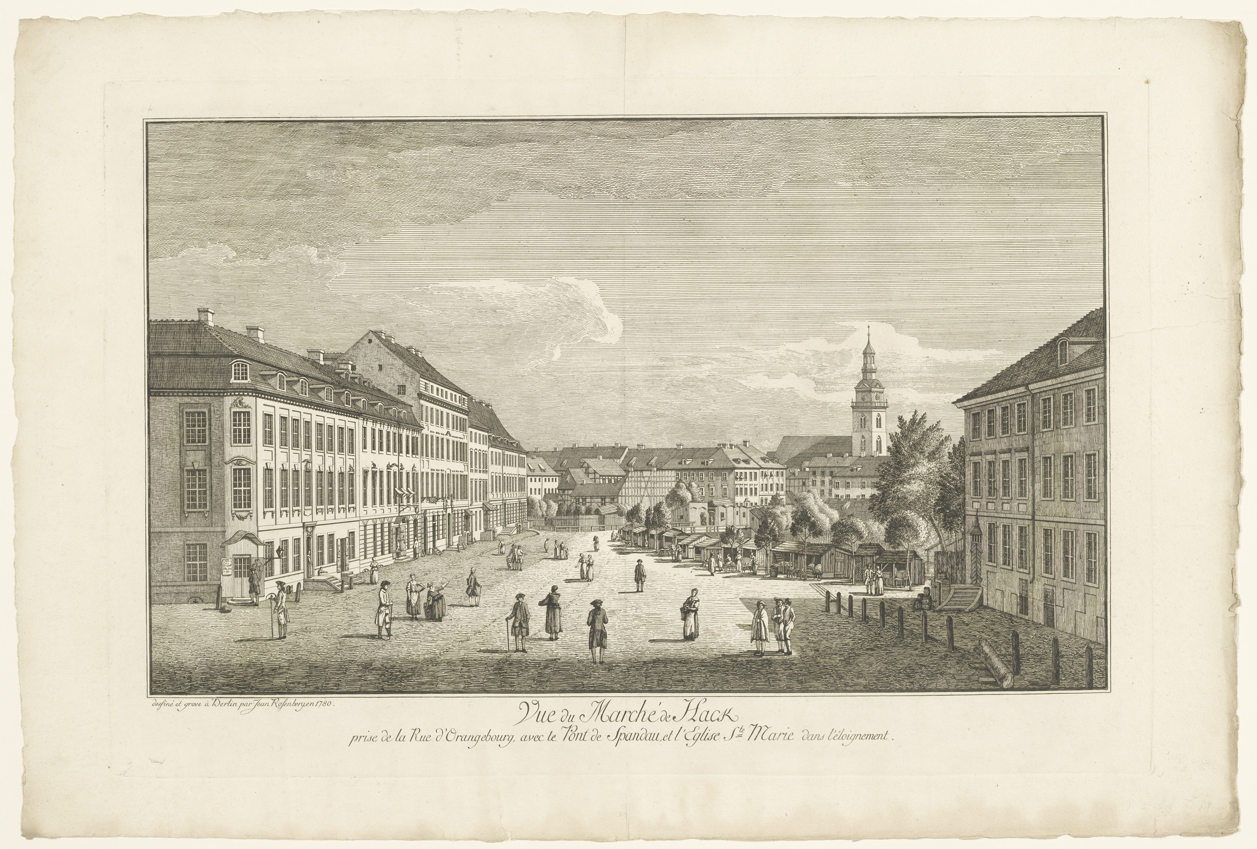 Gezicht op een markt in Berlijn met de Marienkirche