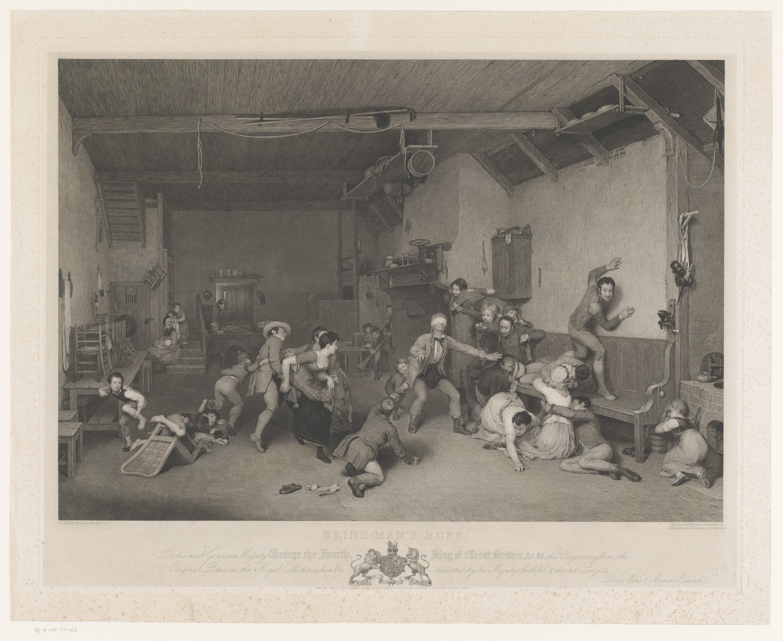 Blindemannetje in interieur met openhaard
