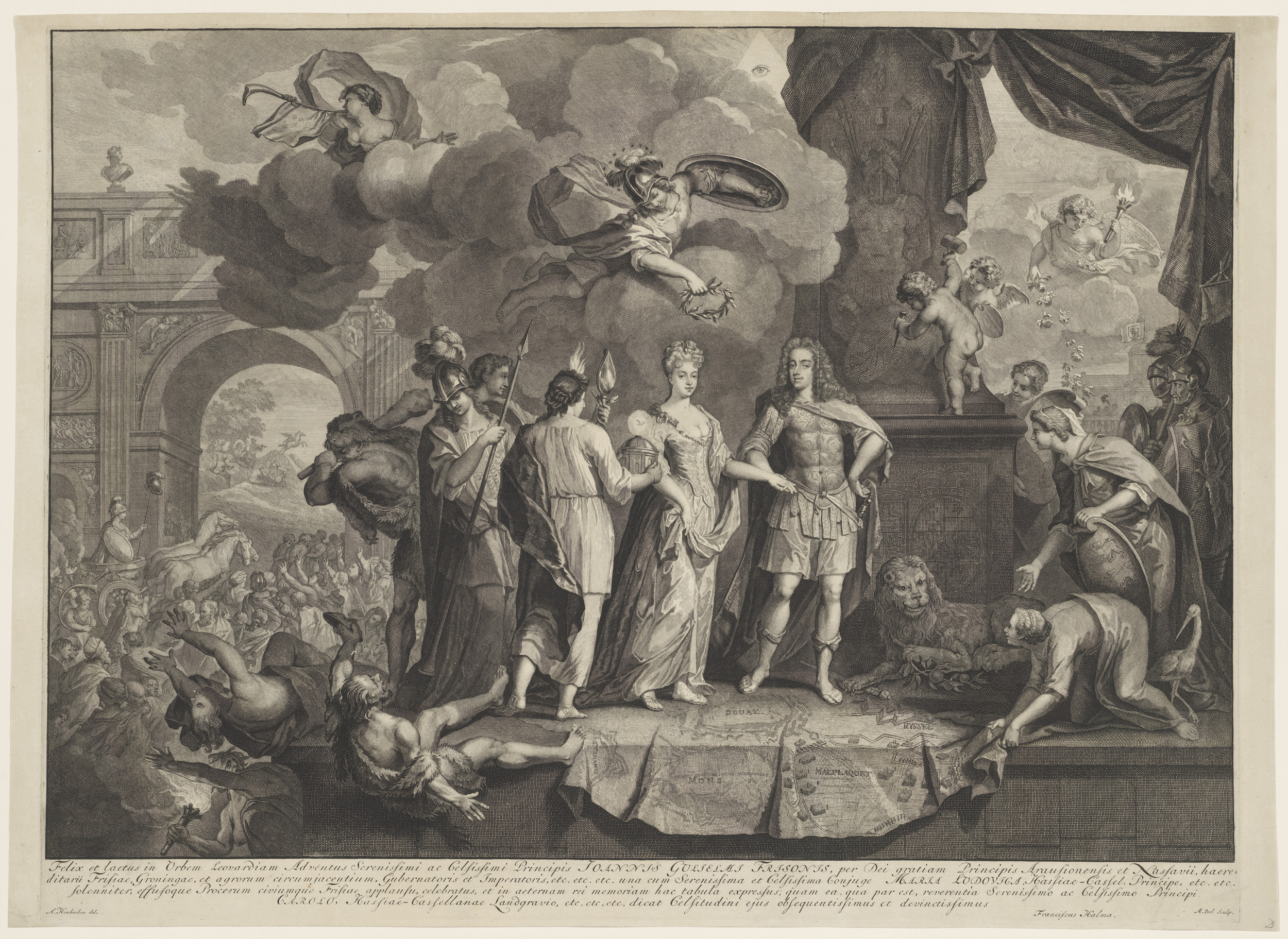 Zinneprent van de aankomst van Johan Willem Friso en...