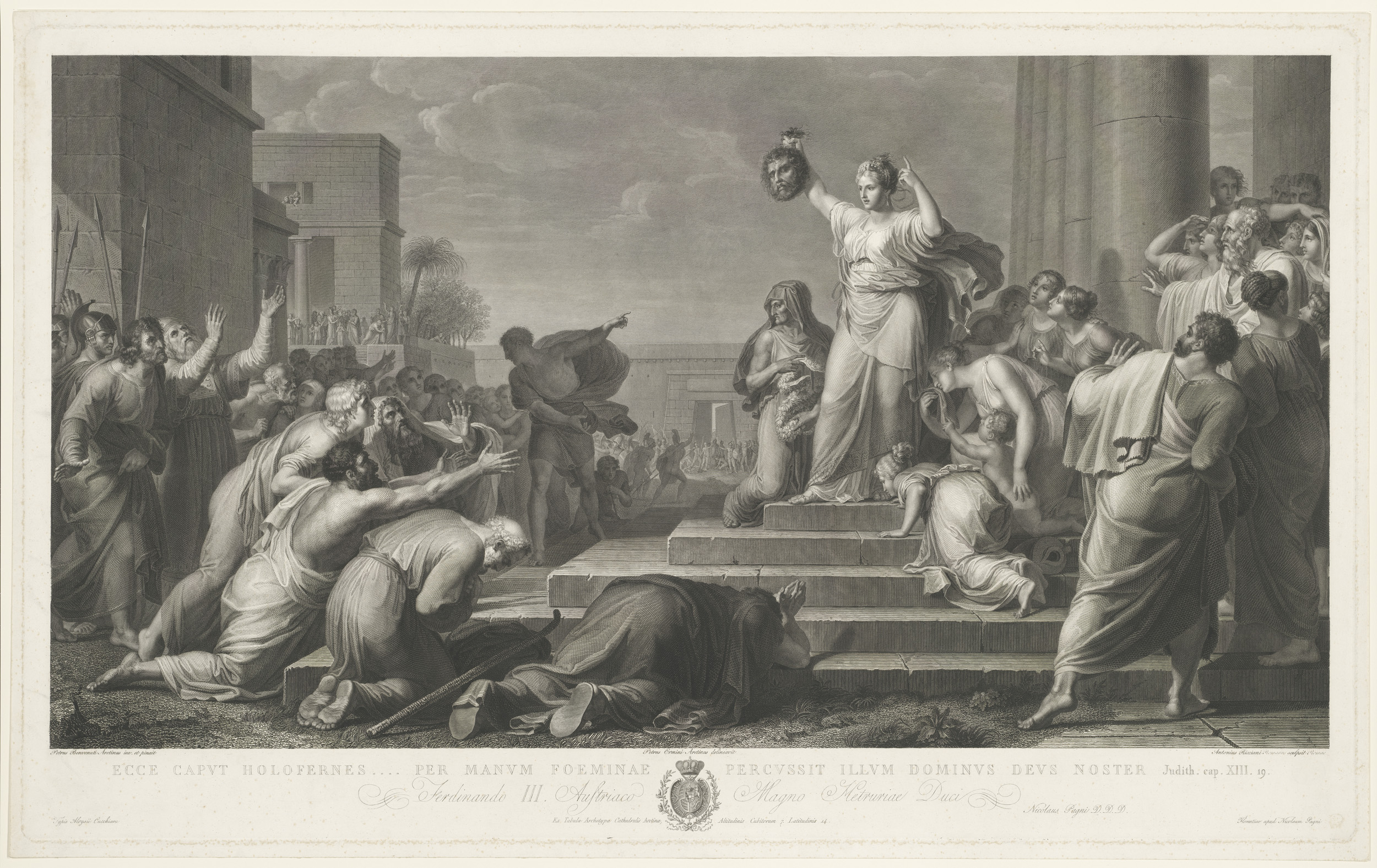 Judit toont het hoofd van Holofernes aan het volk
