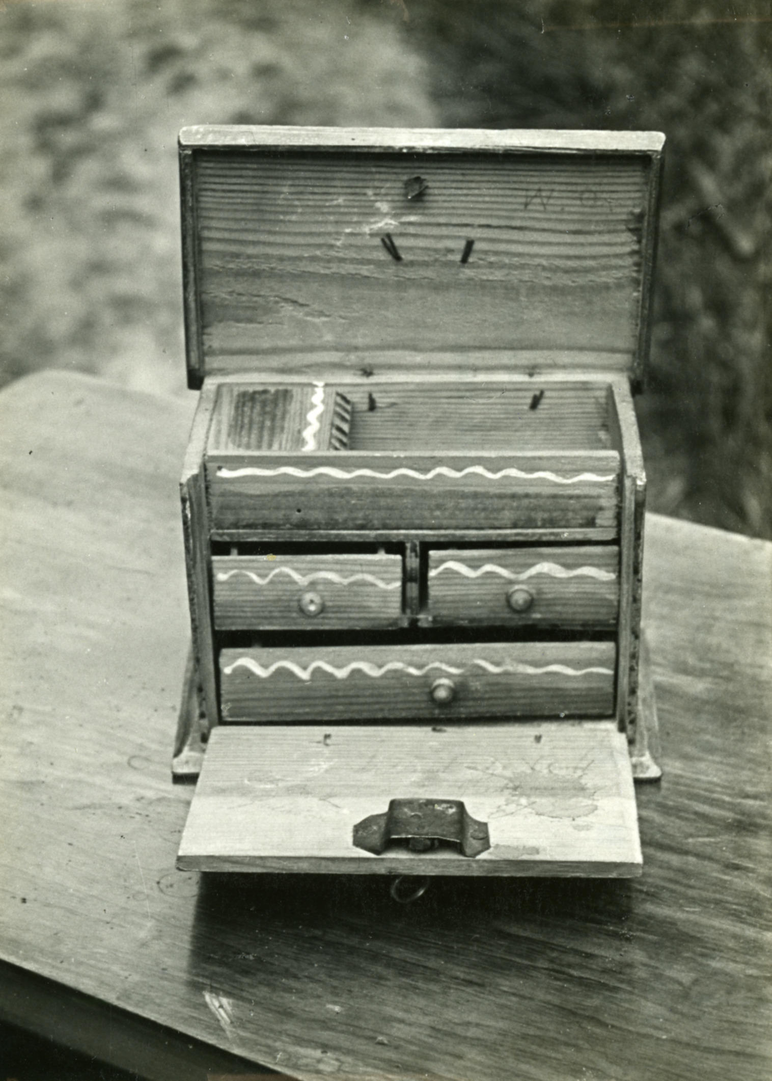 Beschilderd kistje, Giethoorn, 1947 (zwart-wit foto)