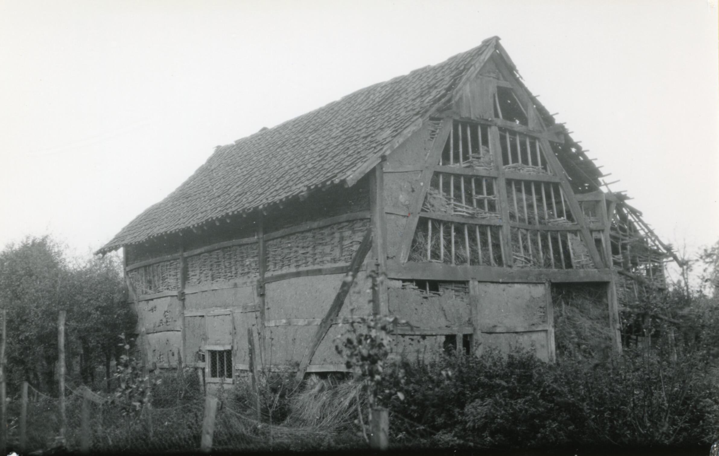 Boerderijdak zonder pannen, Munstergeleen, 1930 (zwa...