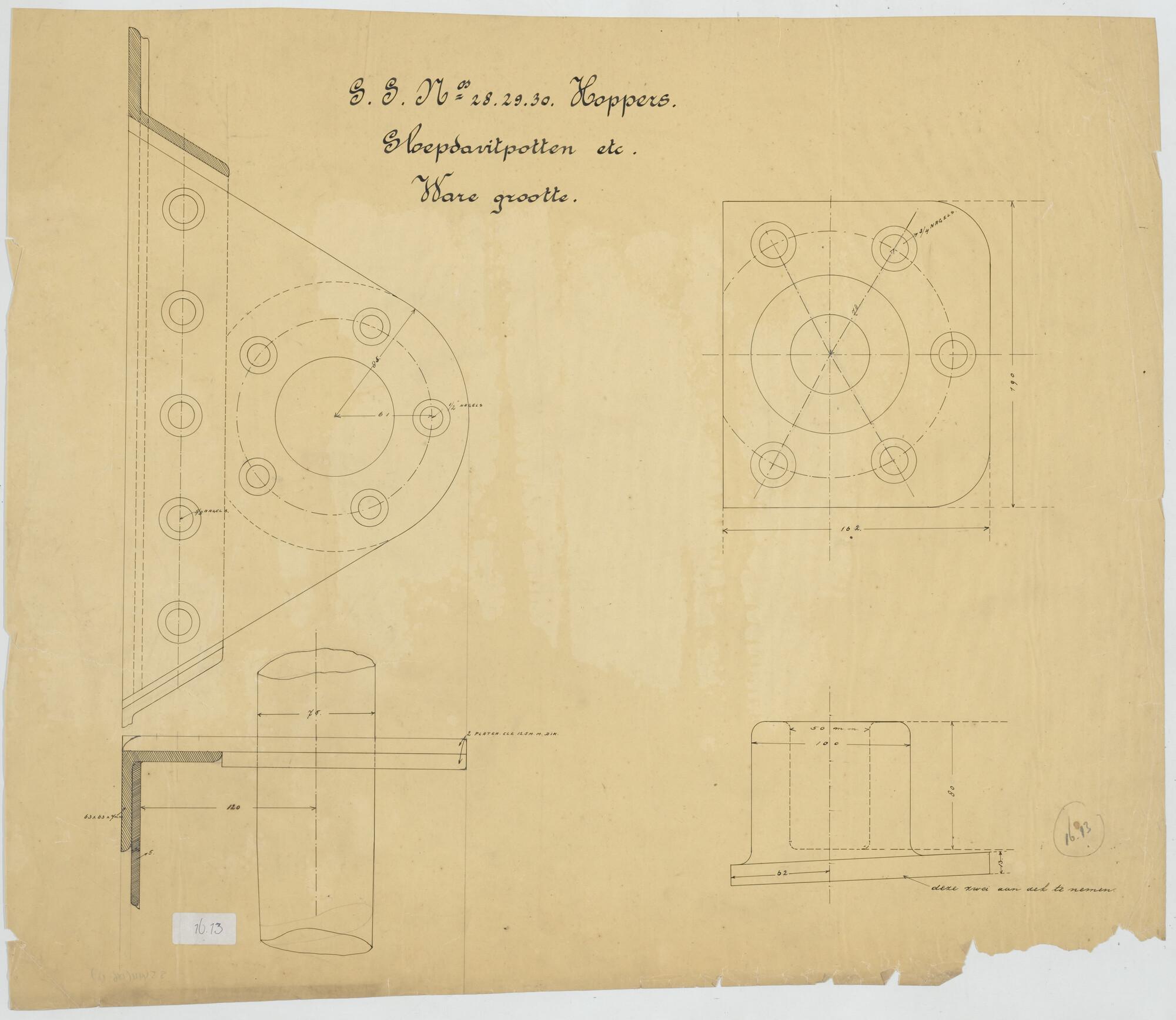 Plan voor de kolenbunkers van een hopperzuiger