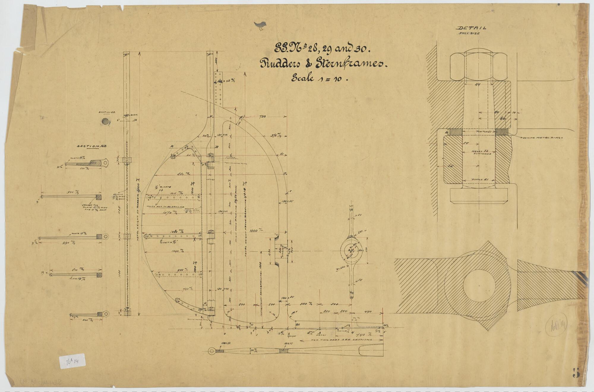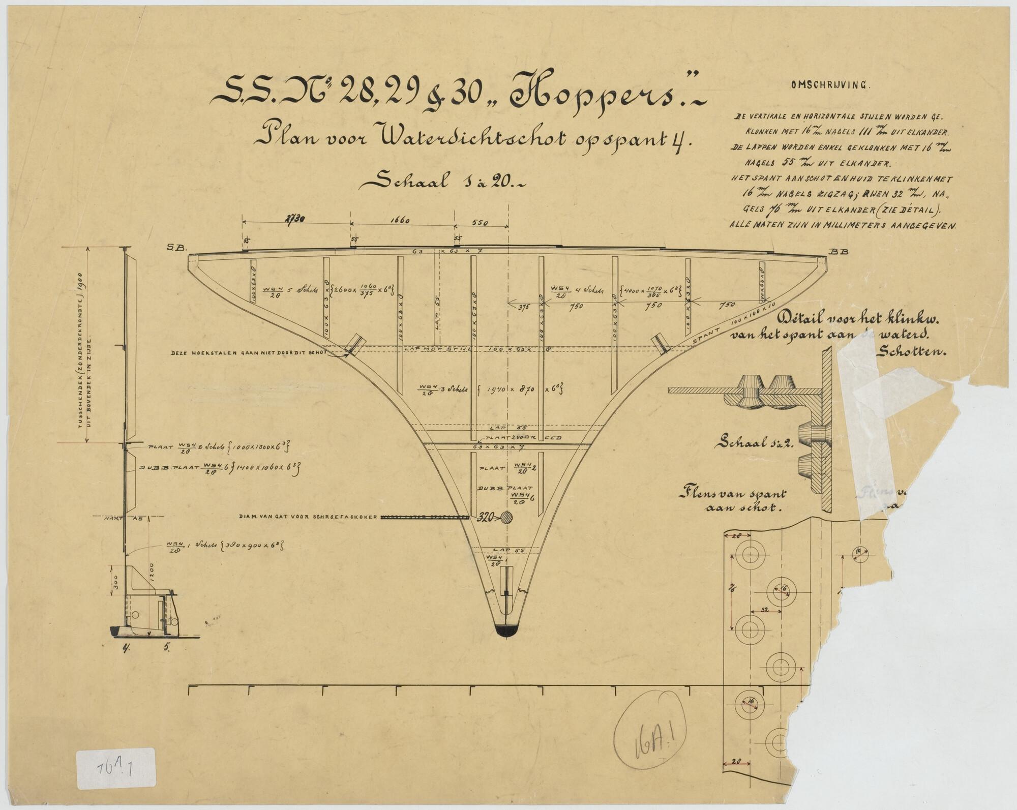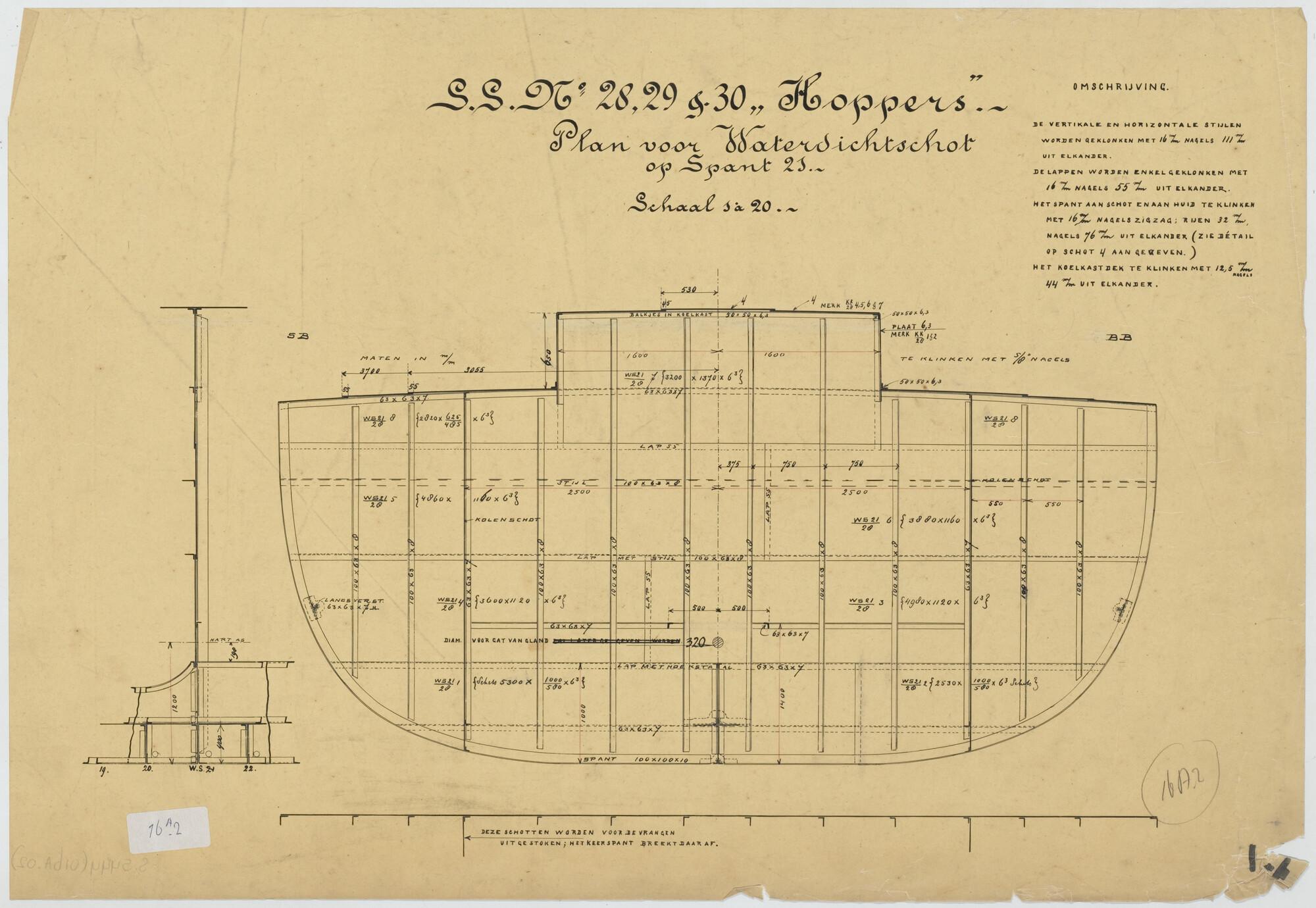 Plan voor waterdicht schot op spant 21 van een hoppe...