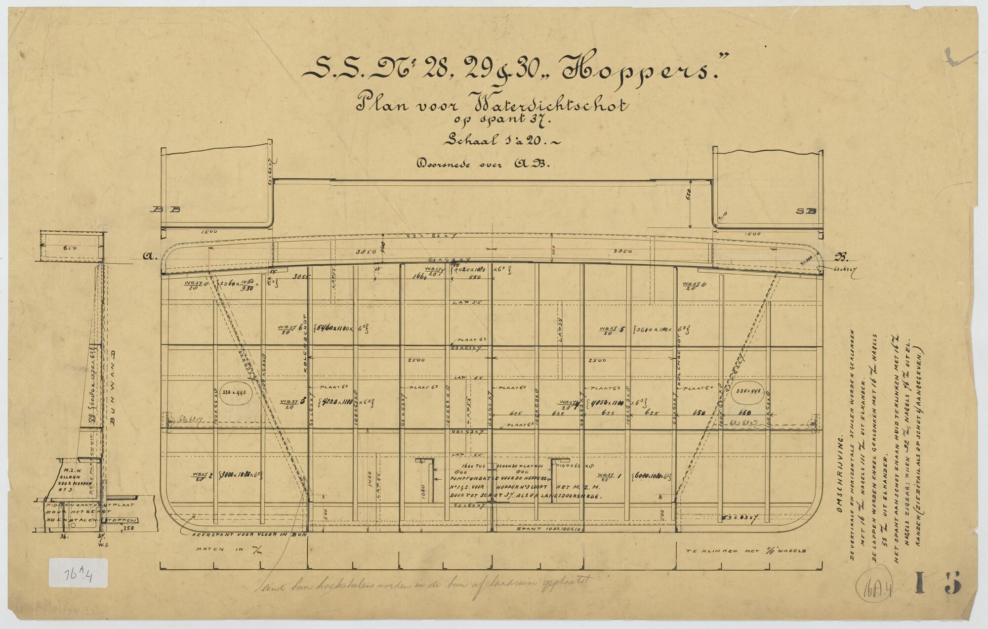 Plan voor waterdicht schot op spant 37 van een hoppe...