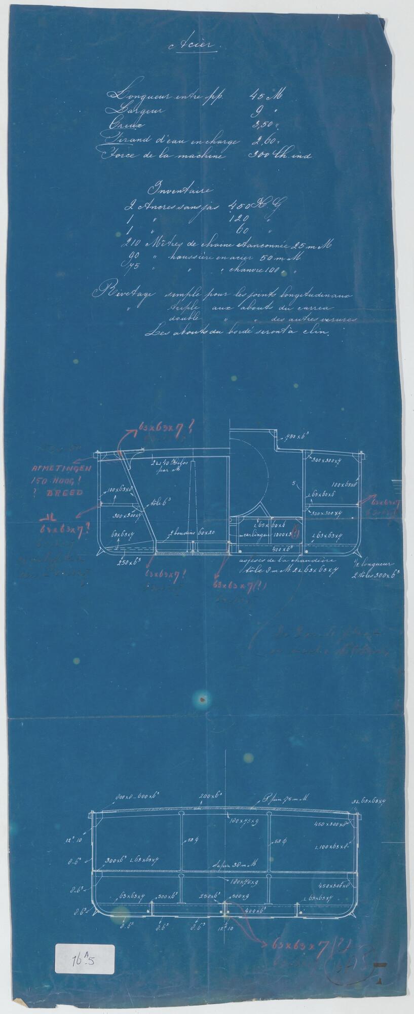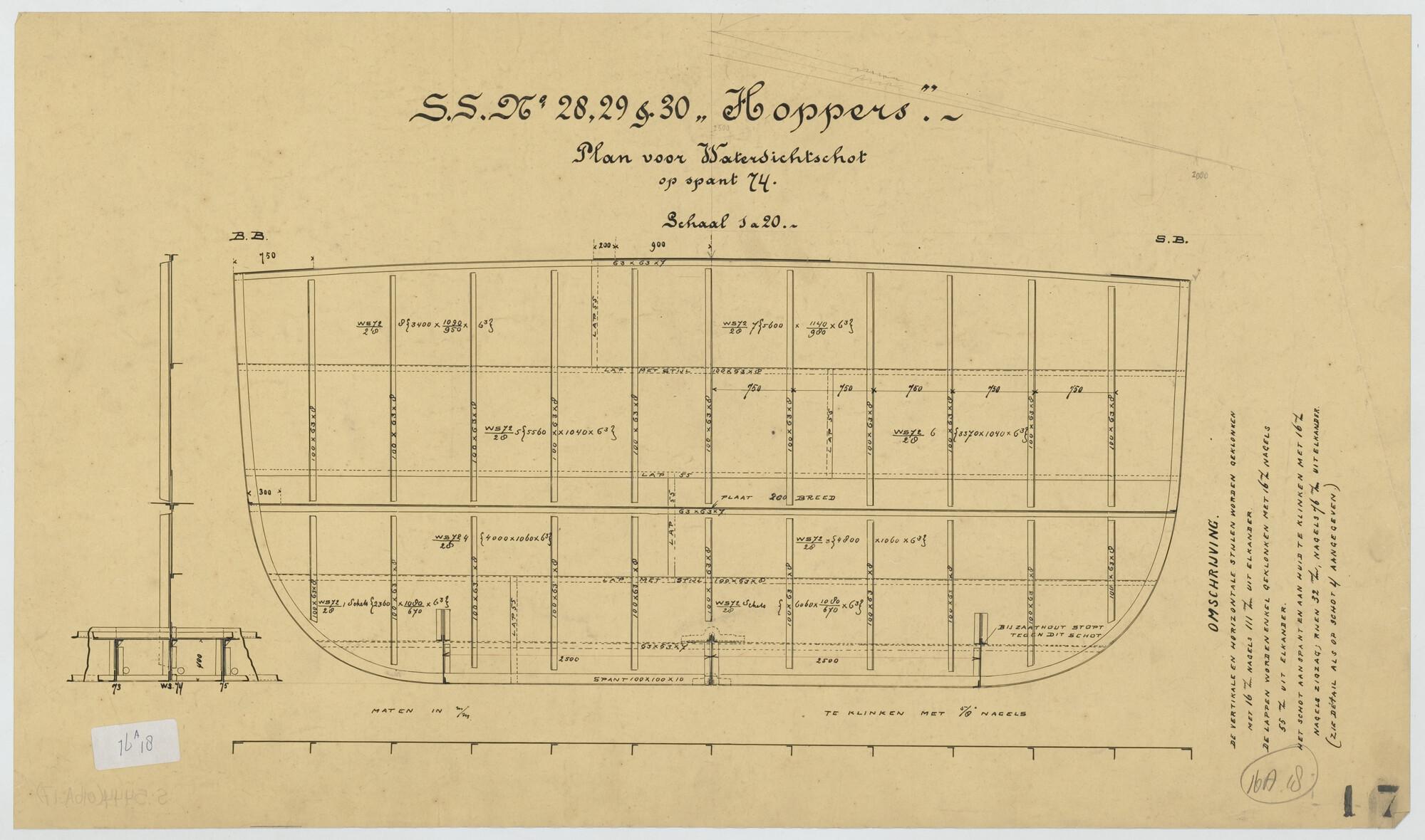 Plan voor waterdicht schot op spant 74 van een hoppe...