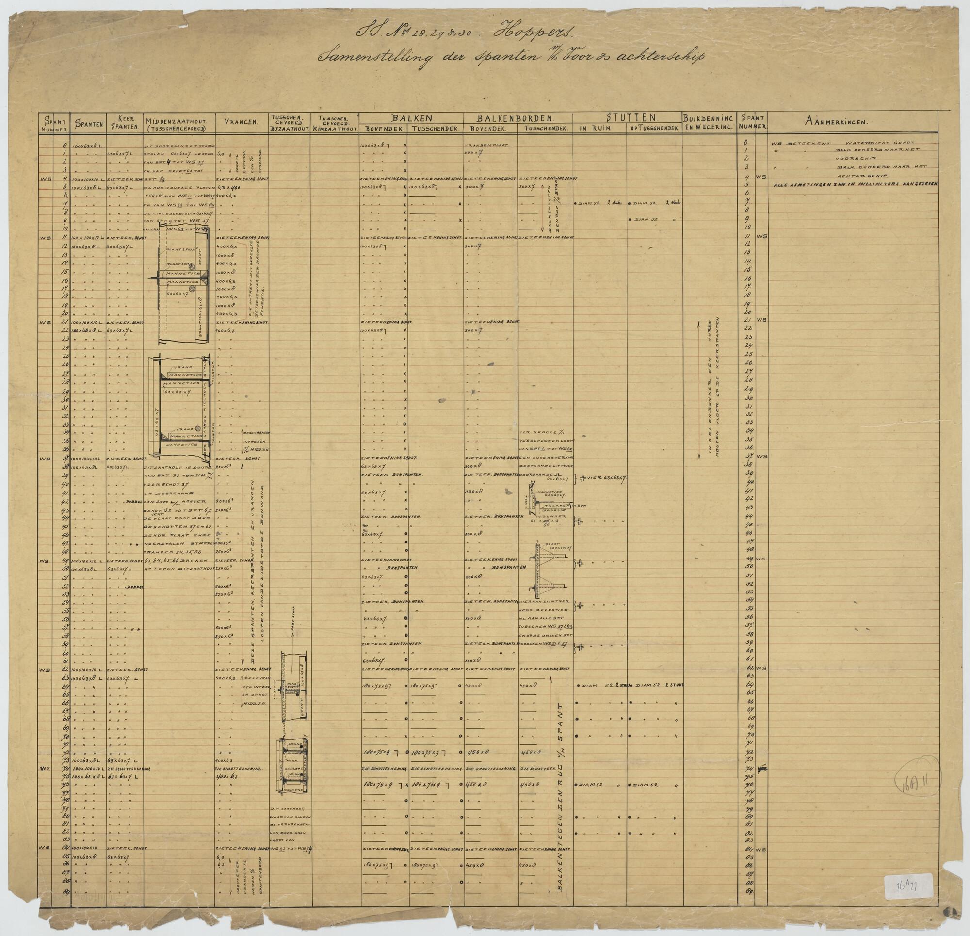 Plan voor waterdicht schot op spant 11 van een hoppe...