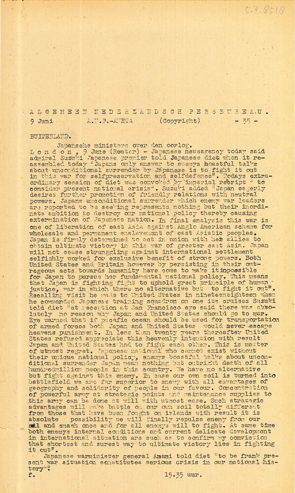 Vel: Algemeen Nederlandsch Persbureau, mededelingen,...