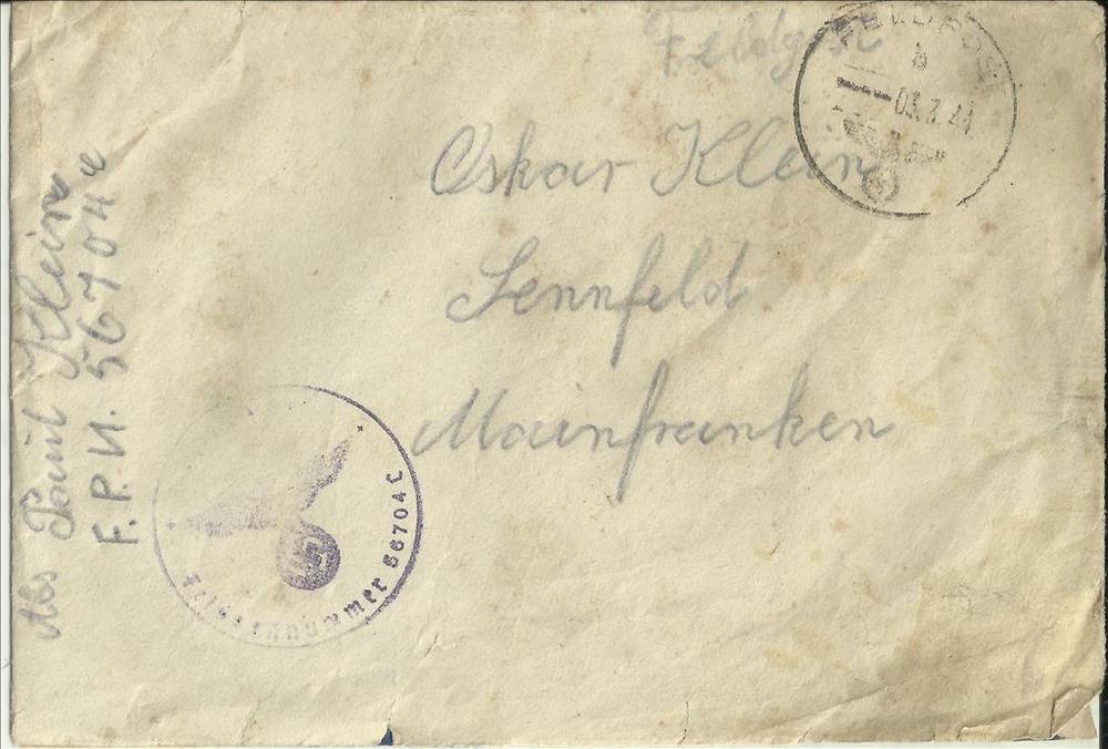 Brief in enveloppe aan de familie Oskar Klein te Sen...