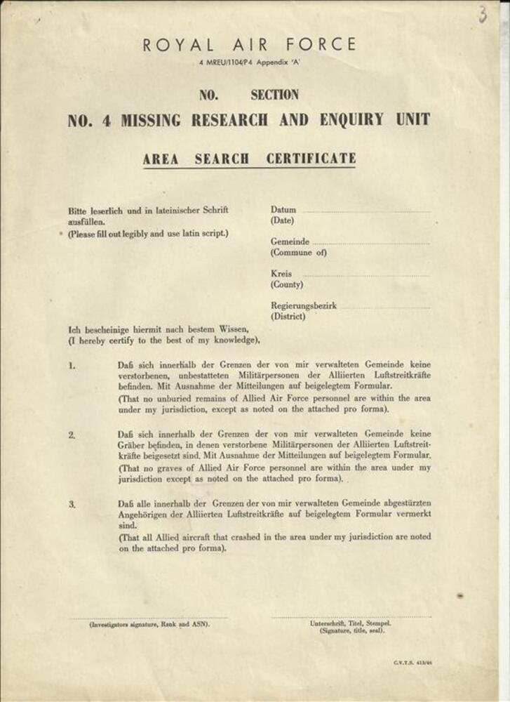 Royal Air Force no 4 Missing Research and Enquiry Unit
