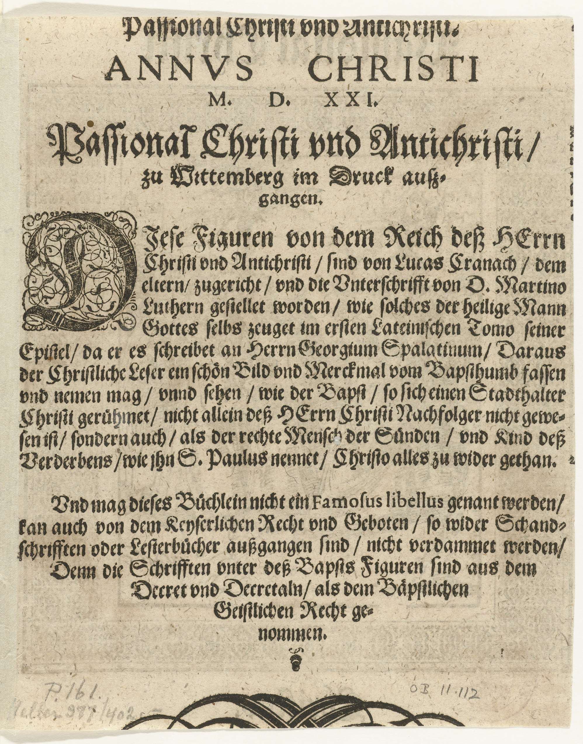 Tekstblad met tekst en initiaal in boekdruk