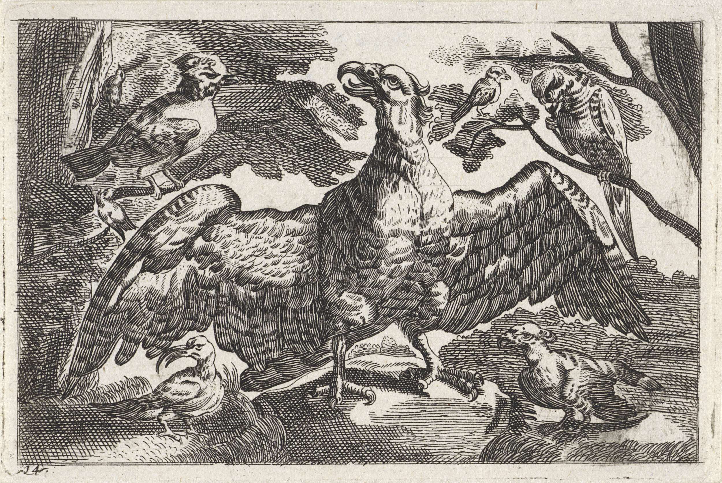 Ornament met uil en andere vogels