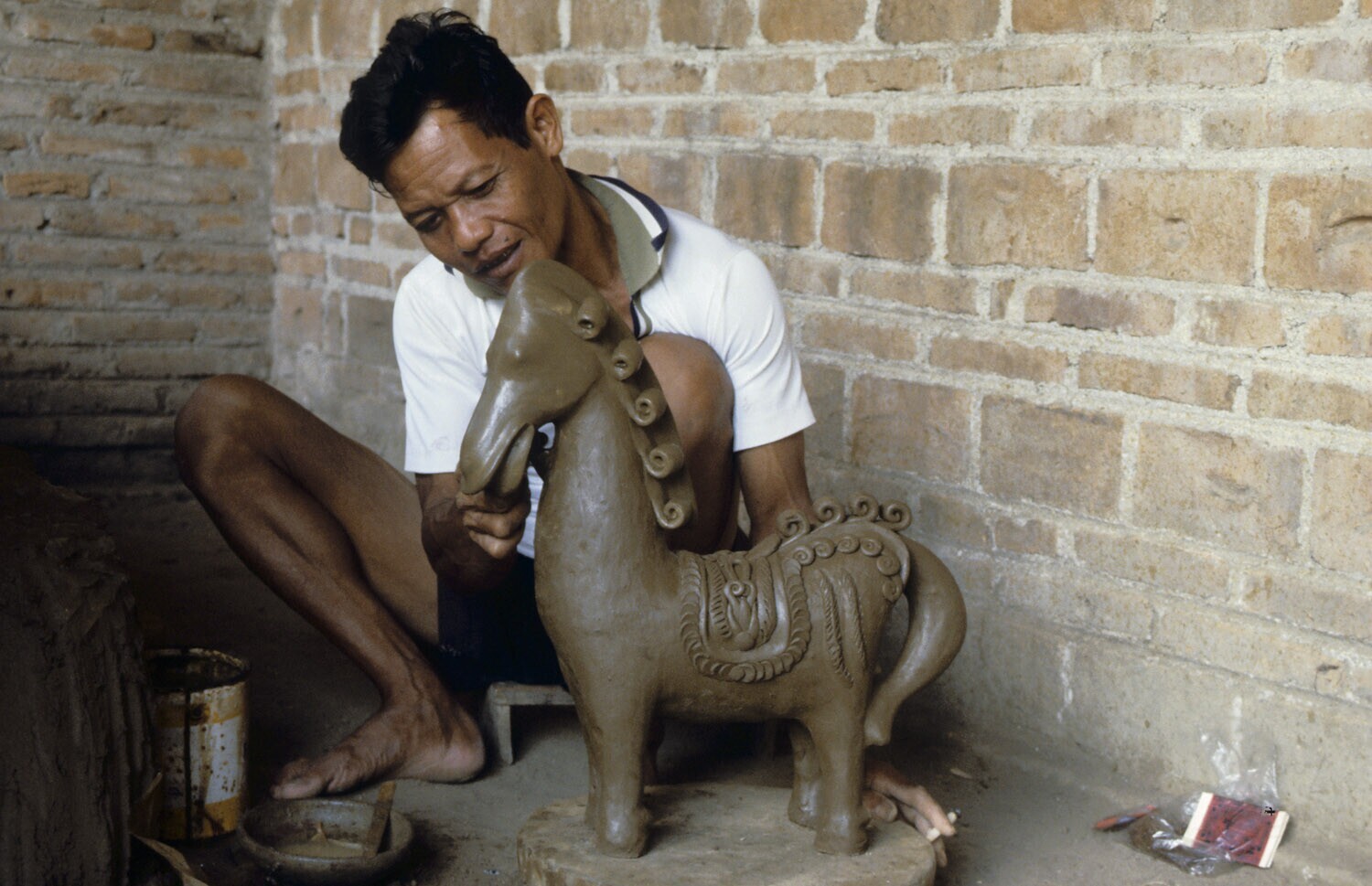 Man maakt een paard van klei. Pottenbakkersdorp Kaso...