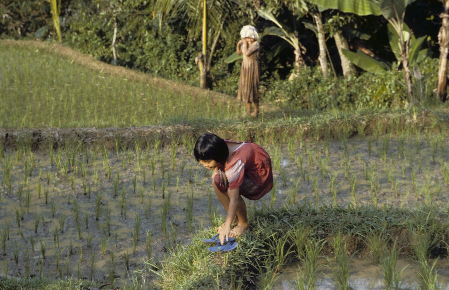 Meisje op een sawah. Midden-Java.