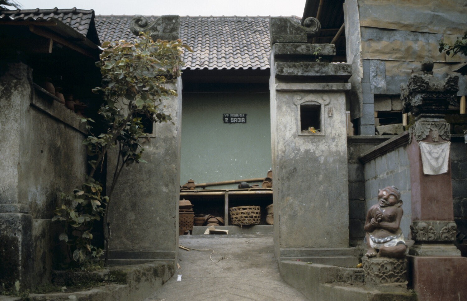 Ingang naar het erf van een pottenbakster, op Bali.