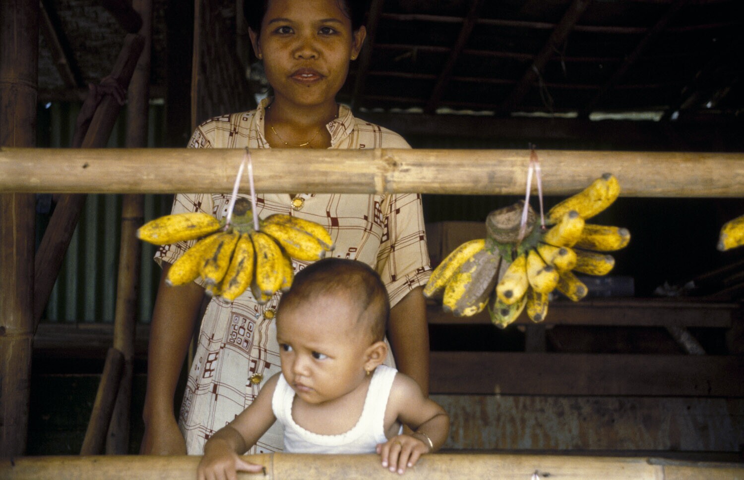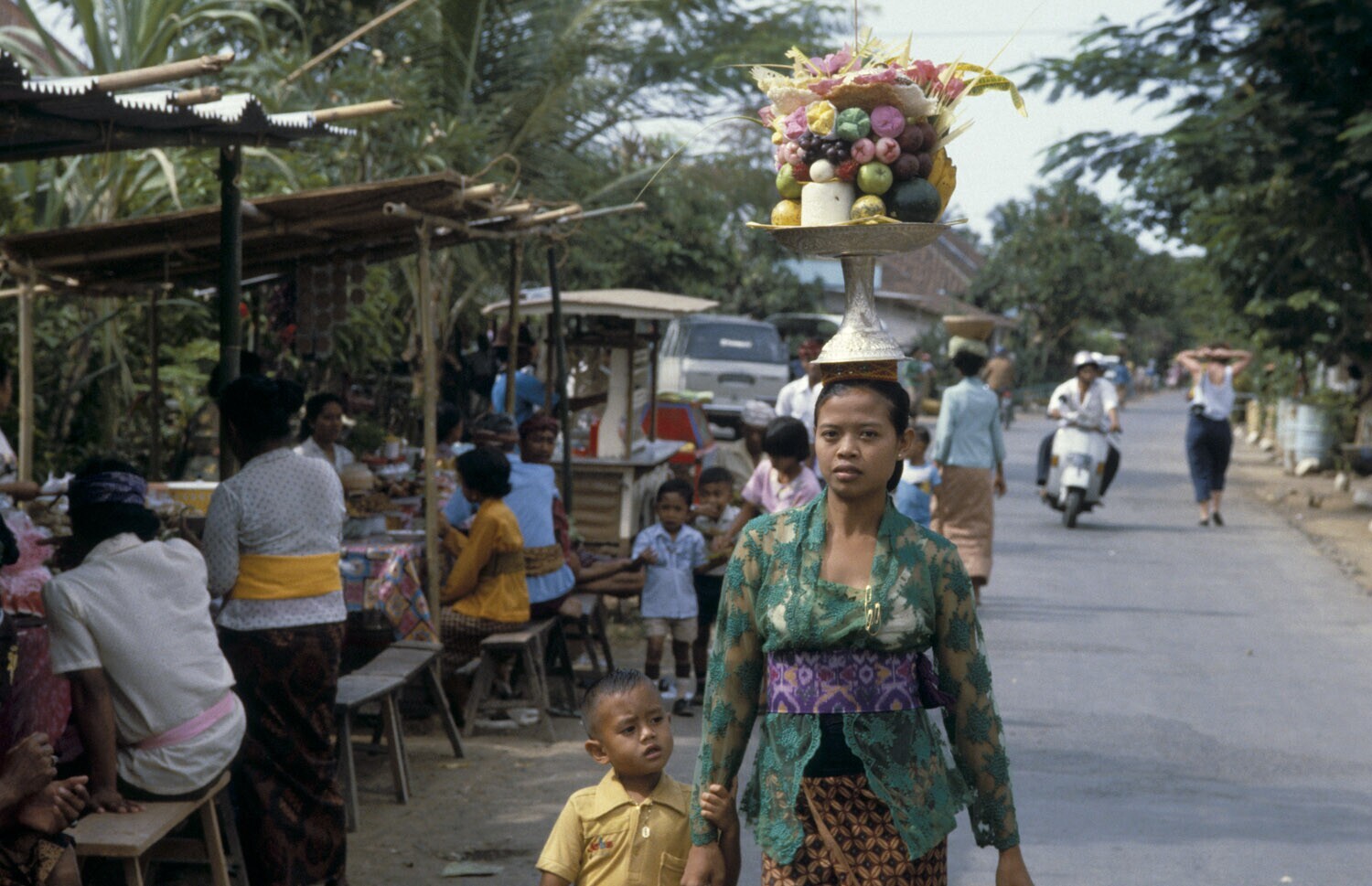 Moeder met kind op de markt, Bali.