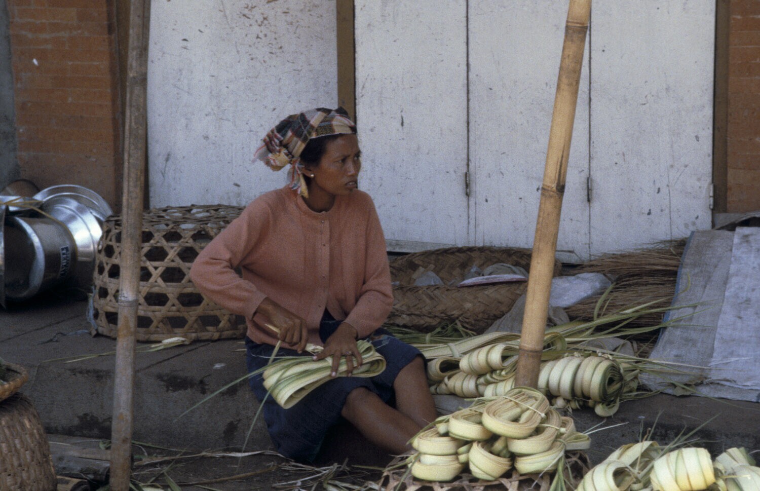 Verkoopster van tempelversieringen gemaakt van jong ...