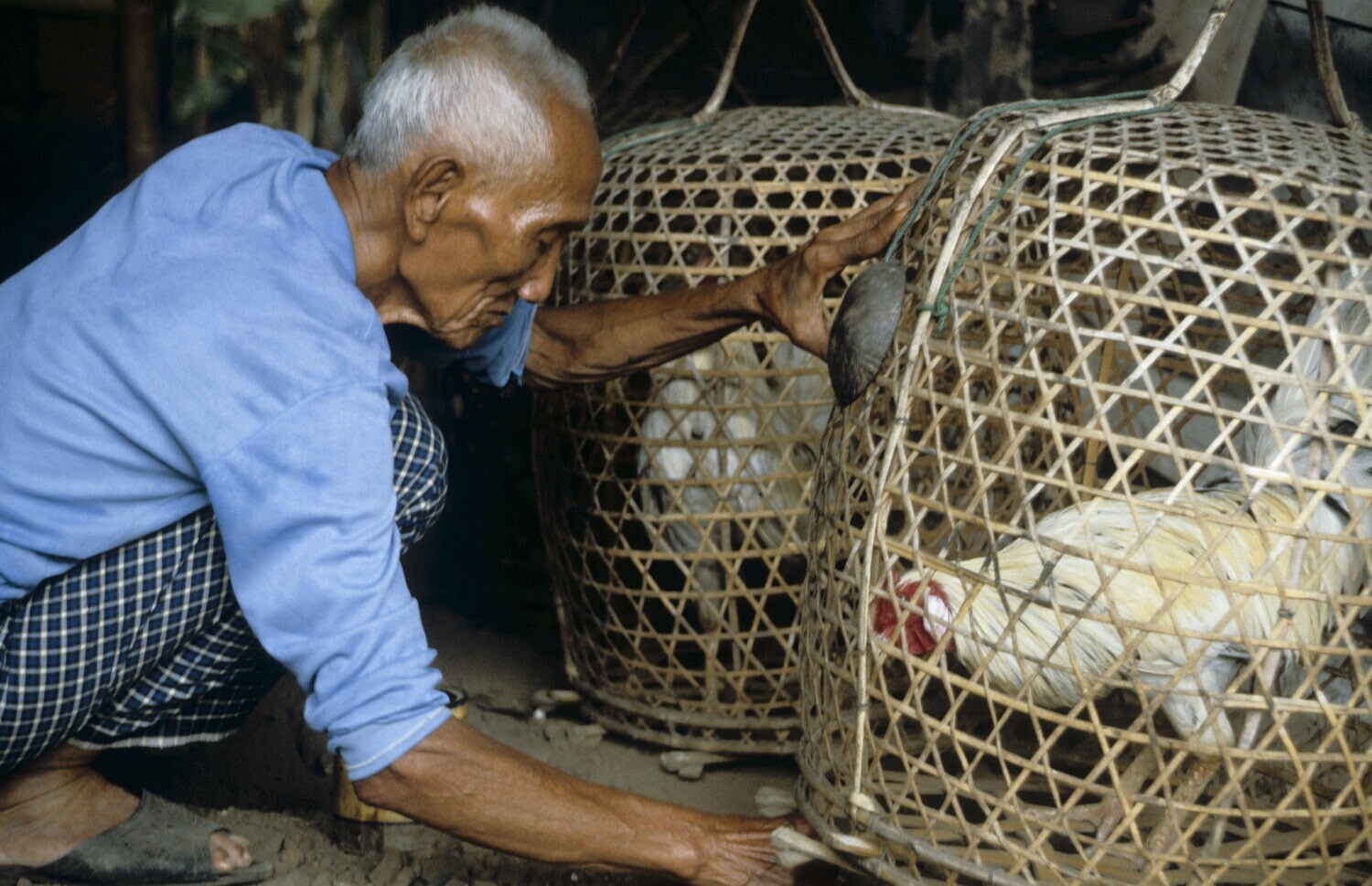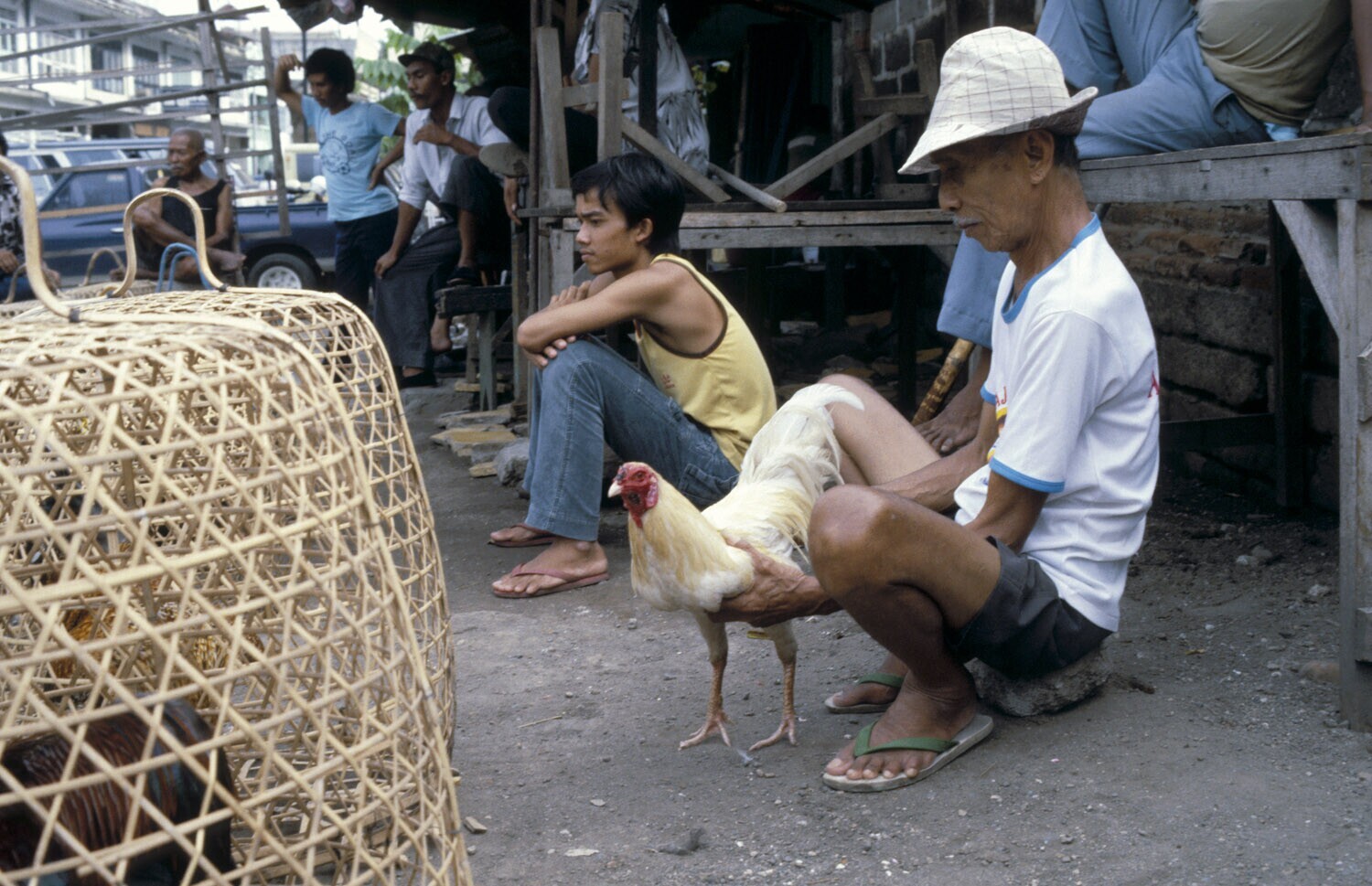 Vechthaan met zijn baas. Denpasar, Bali.