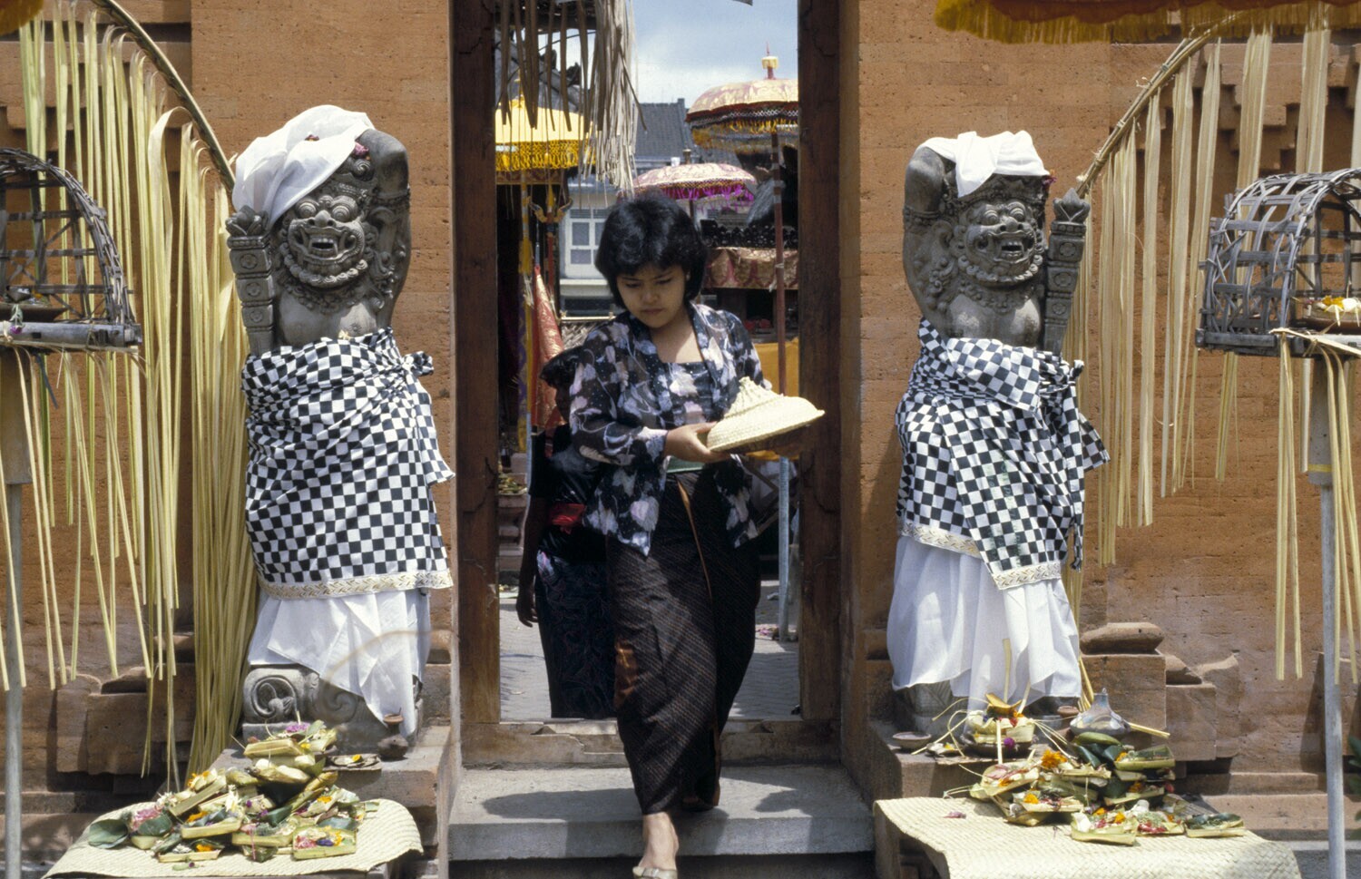 Tempelingang. Een vrouw komt een offer brengen. Denp...