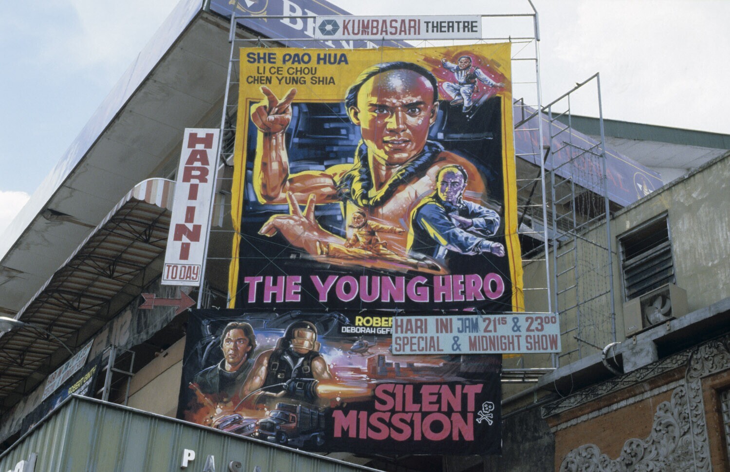 Reclameborden bij het Gaja Mada theater, Denpasar, B...