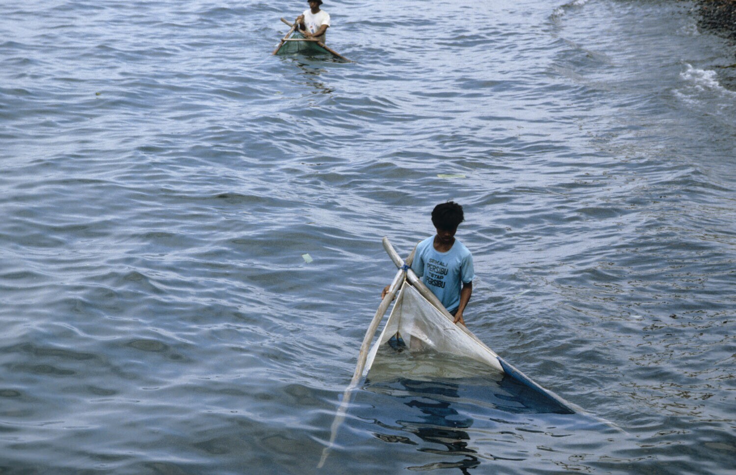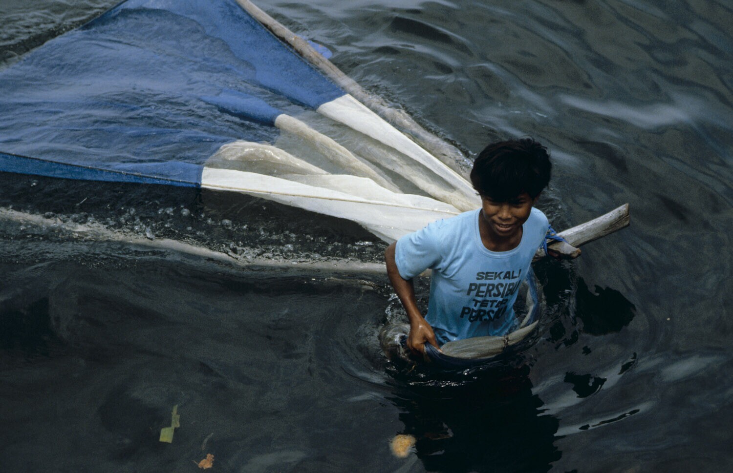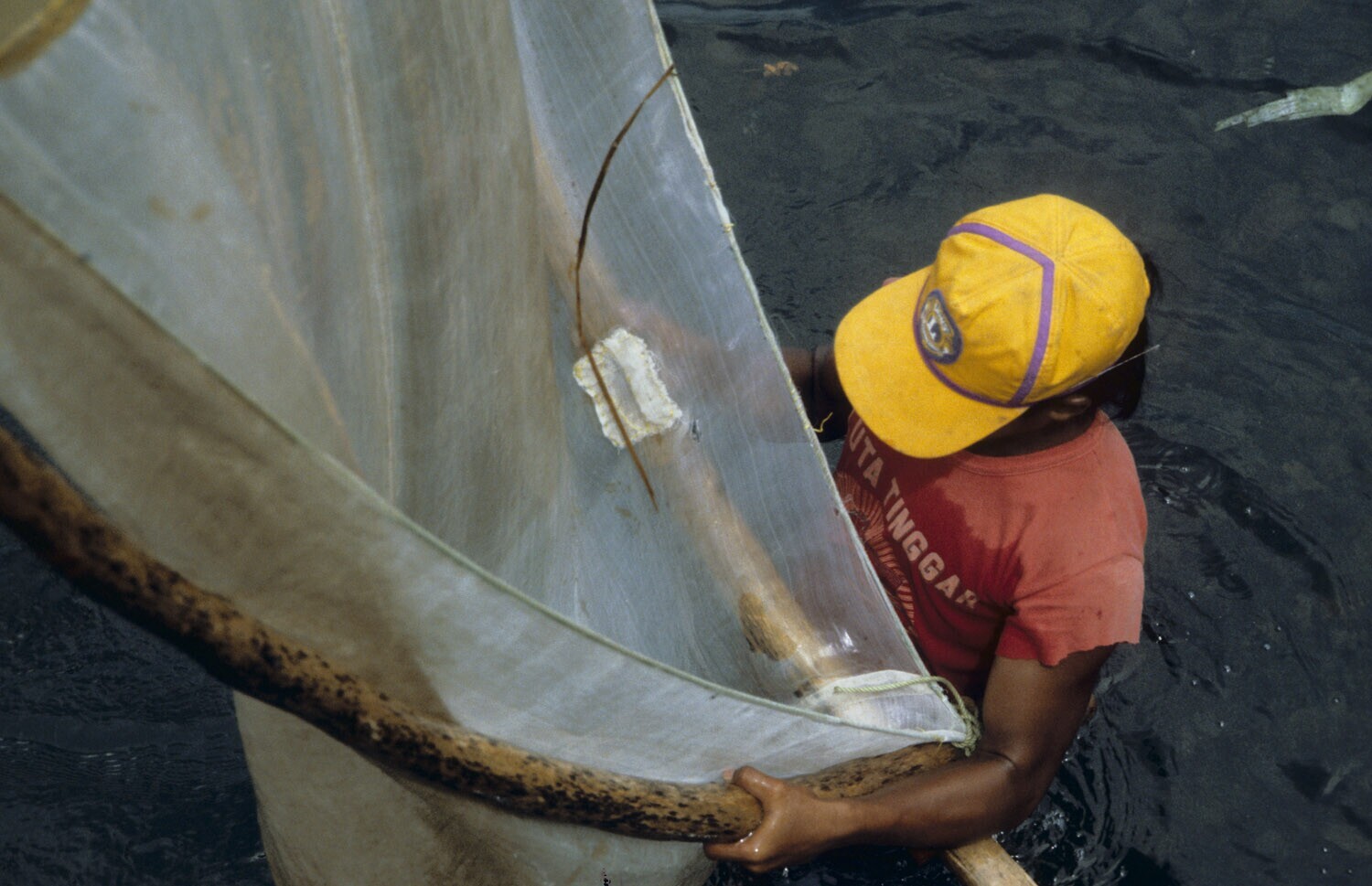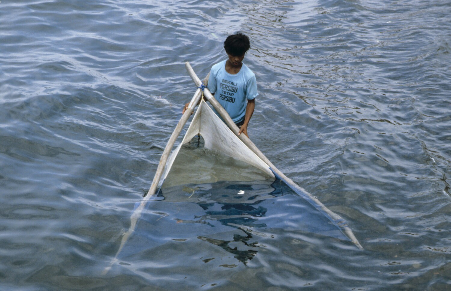 Visser met een net bij de haven van Singaraja