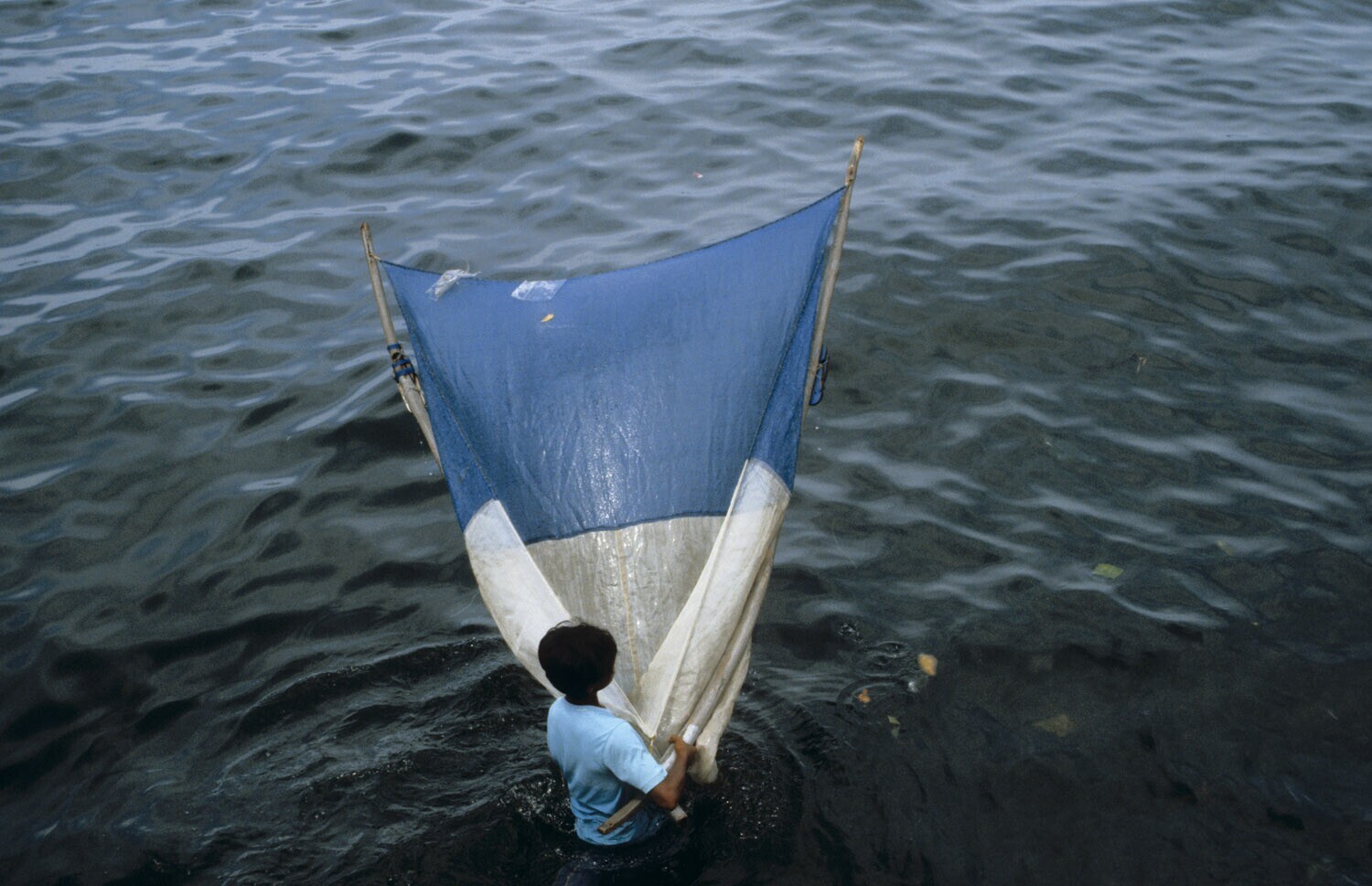 Man fishing with a net in the harbour