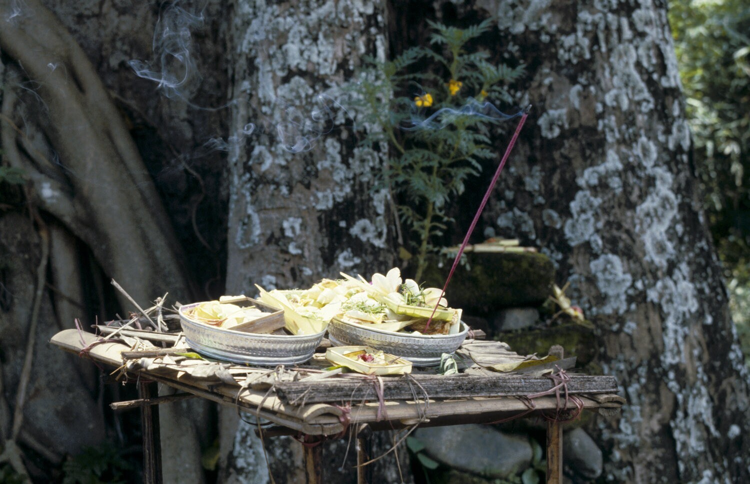 Een tafeltje met veschillende voedseloffers, Sawan, ...