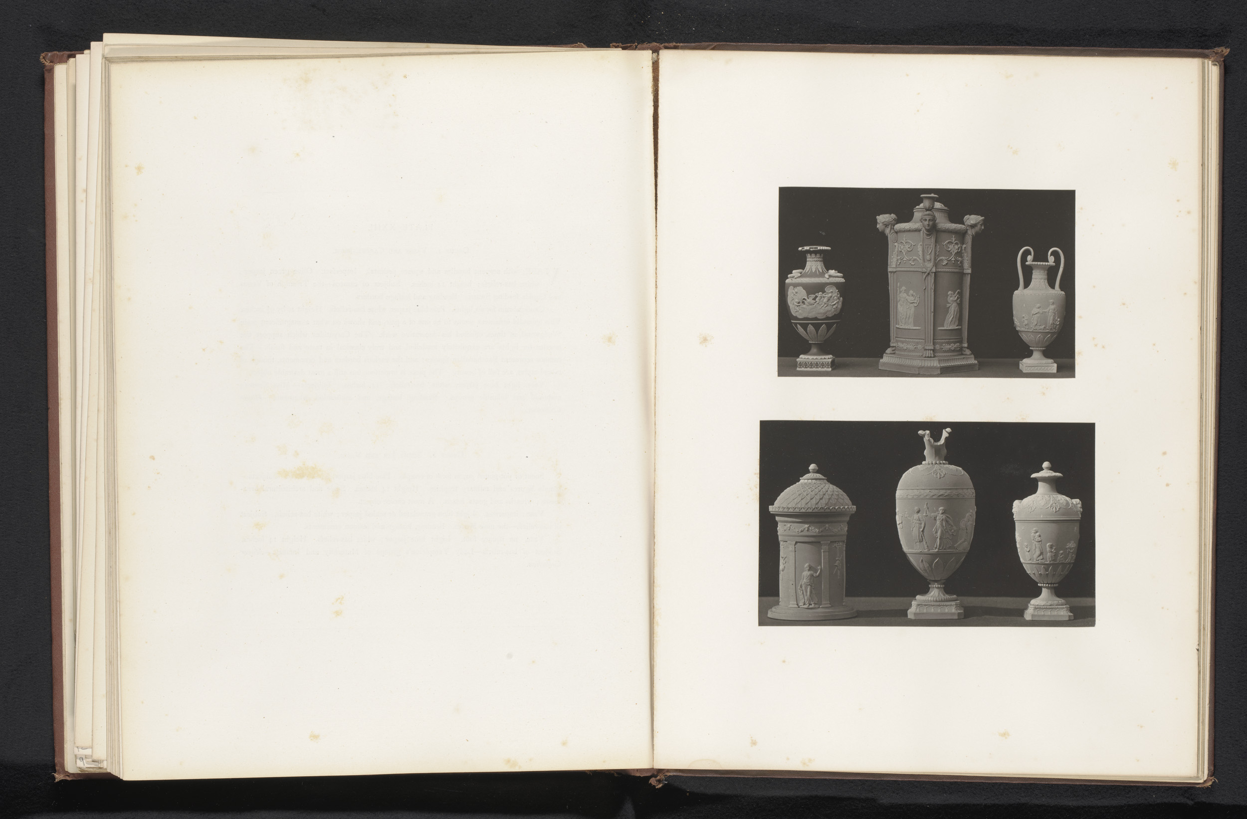 Zes gedecoreerde vazen en voetstukken