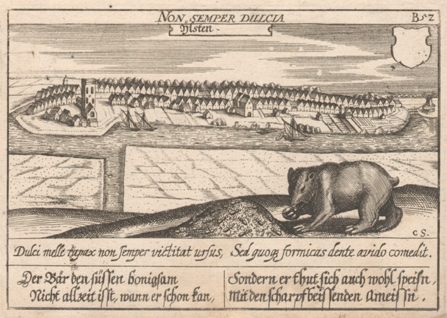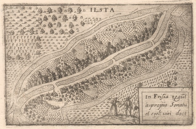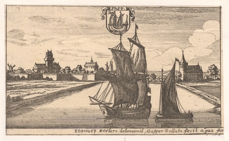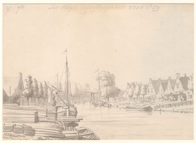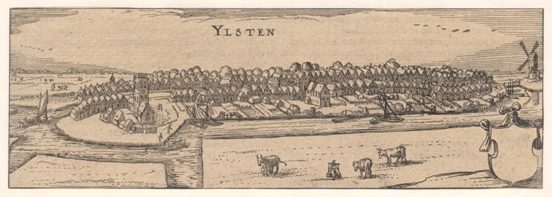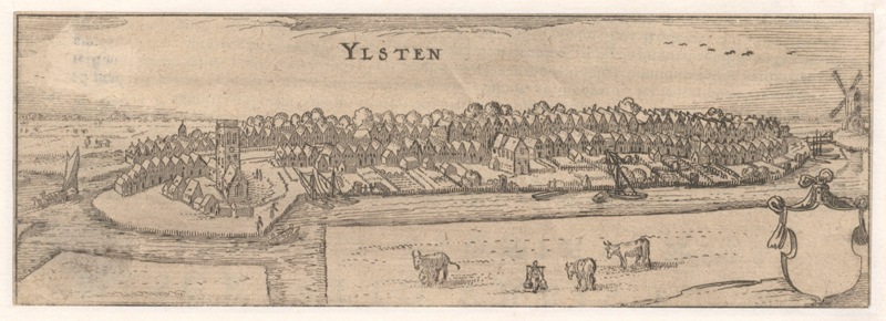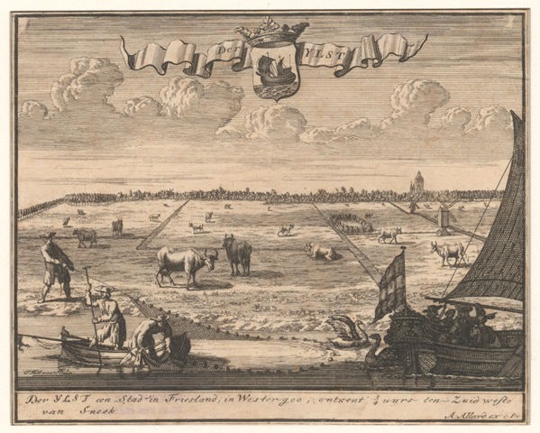 Gezicht op IJlst naar het stadhuis en de waag te zien