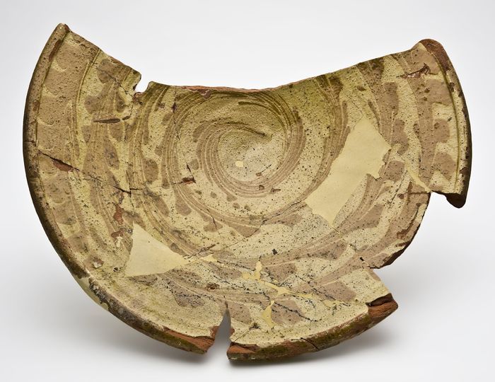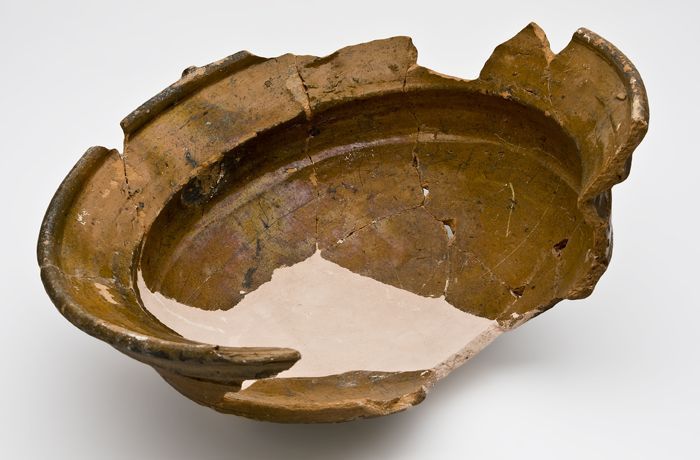Fragmenten van kookpot, inwendig geglazuurd, bandore...