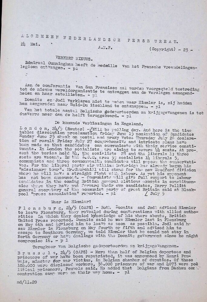 Algemeen Nederlandsch Persbureau, mededelingen, 24 m...