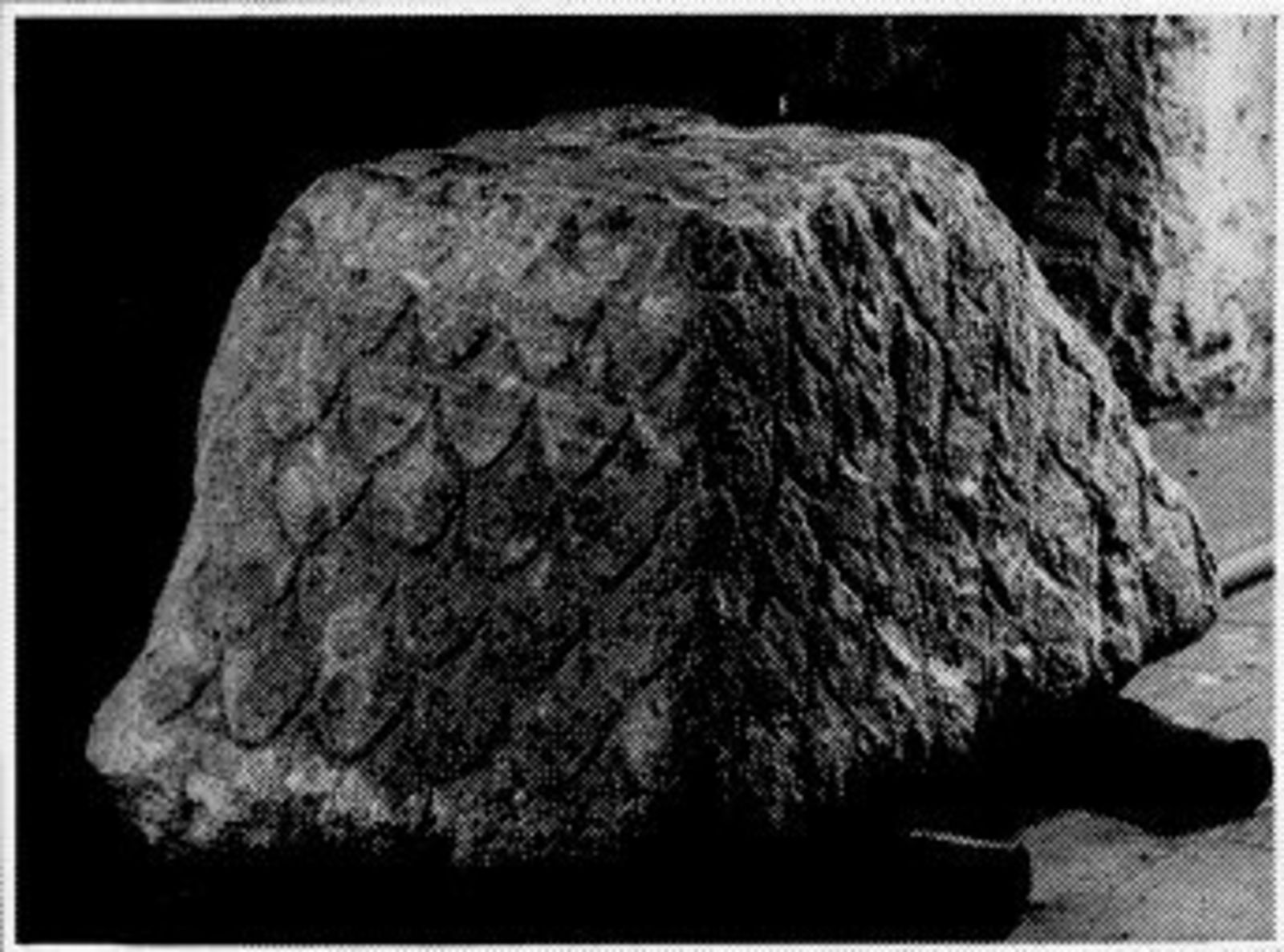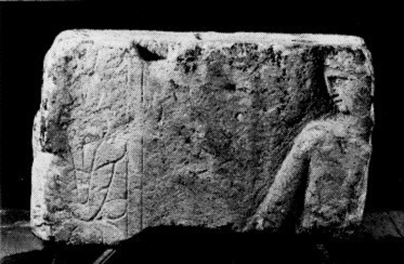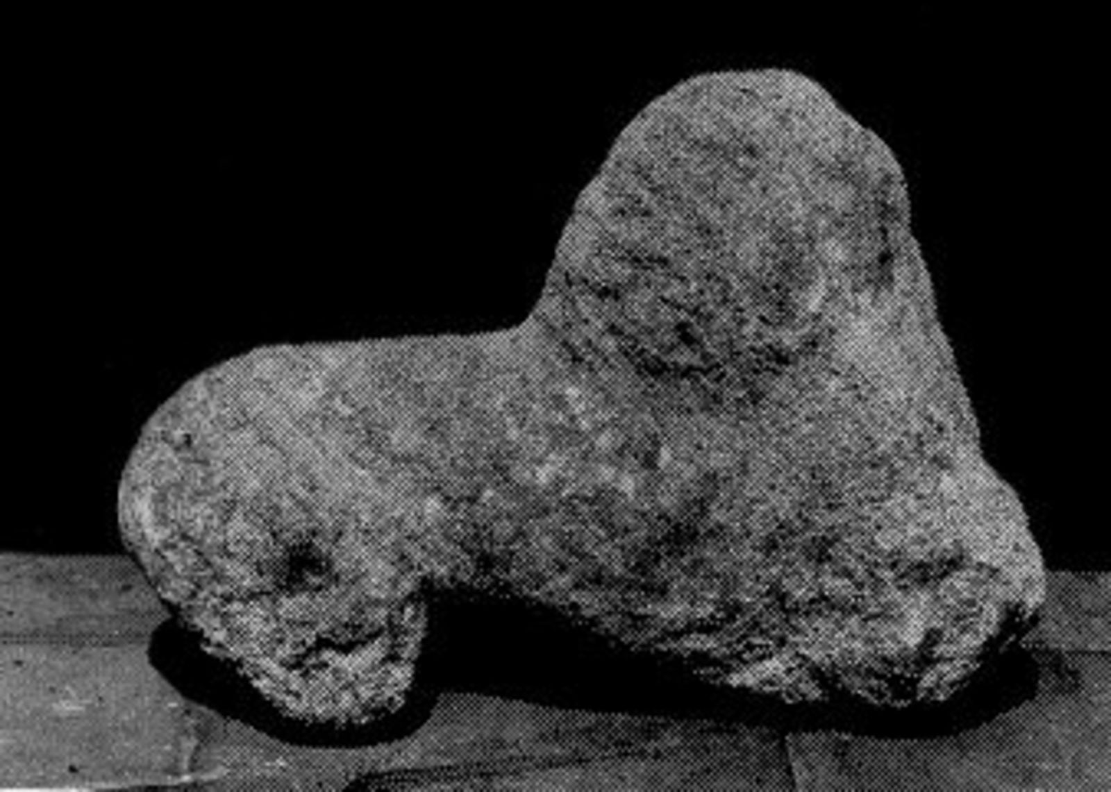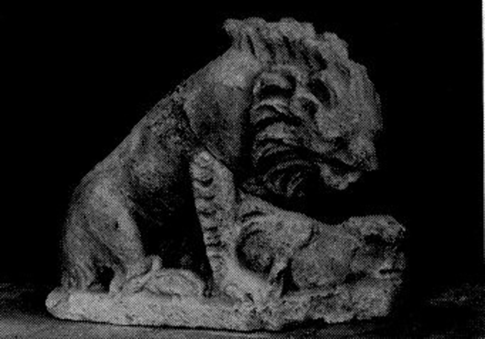 Zittende leeuw met klauw op paardekop