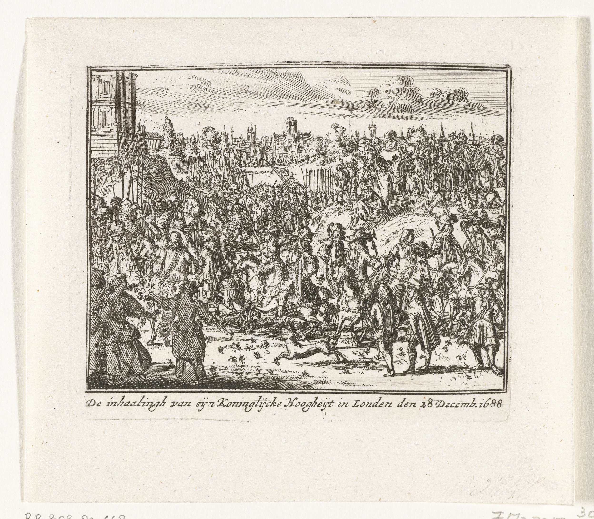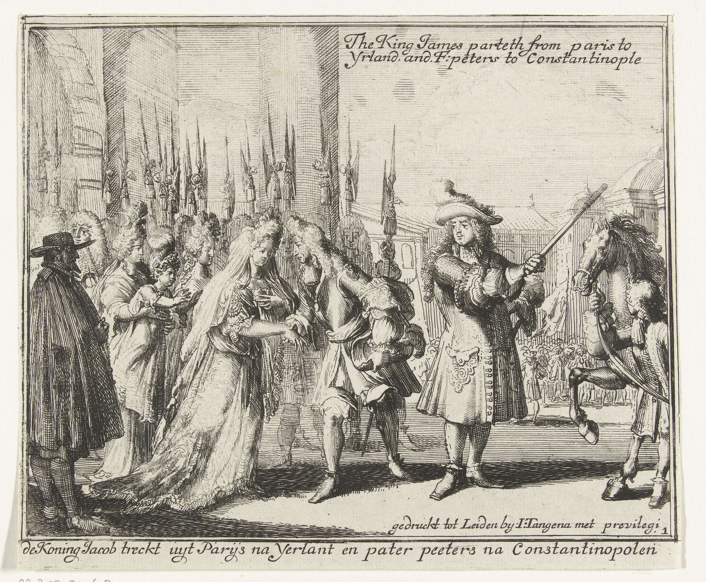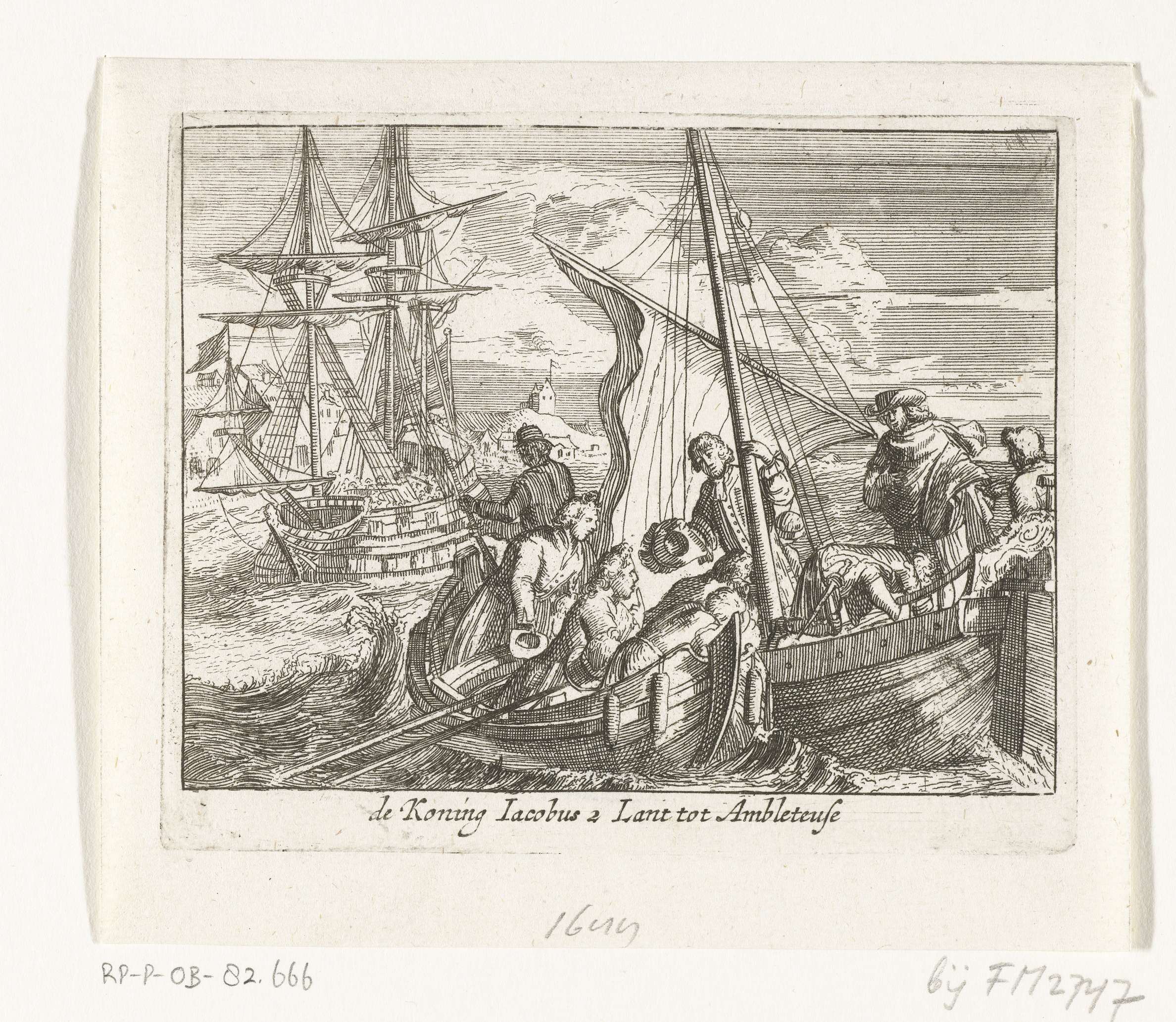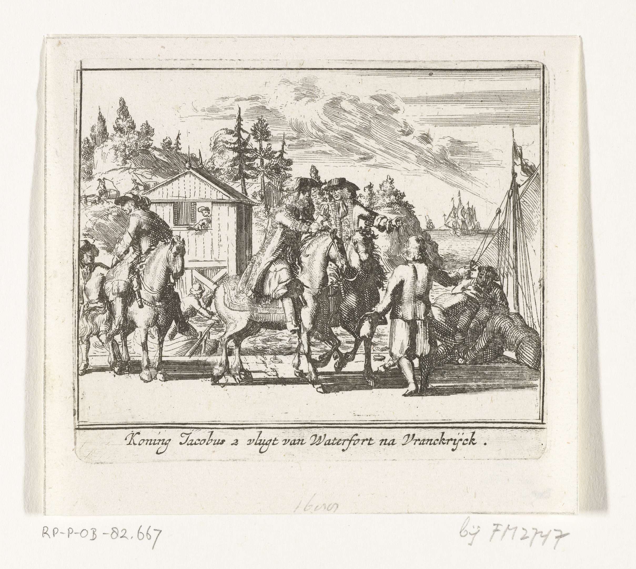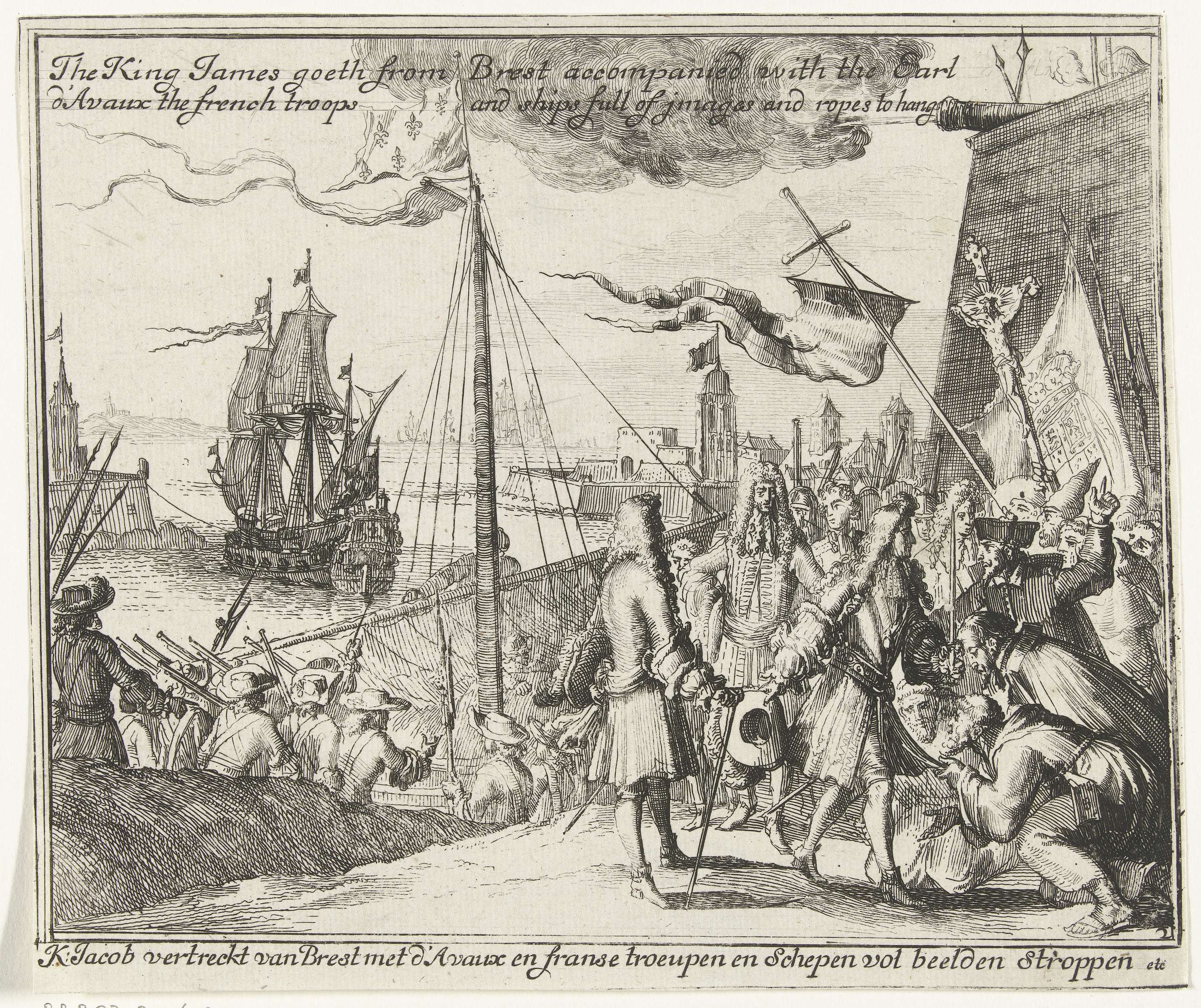 Koning Jacobus II vertrekt uit Parijs naar Ierland, ...