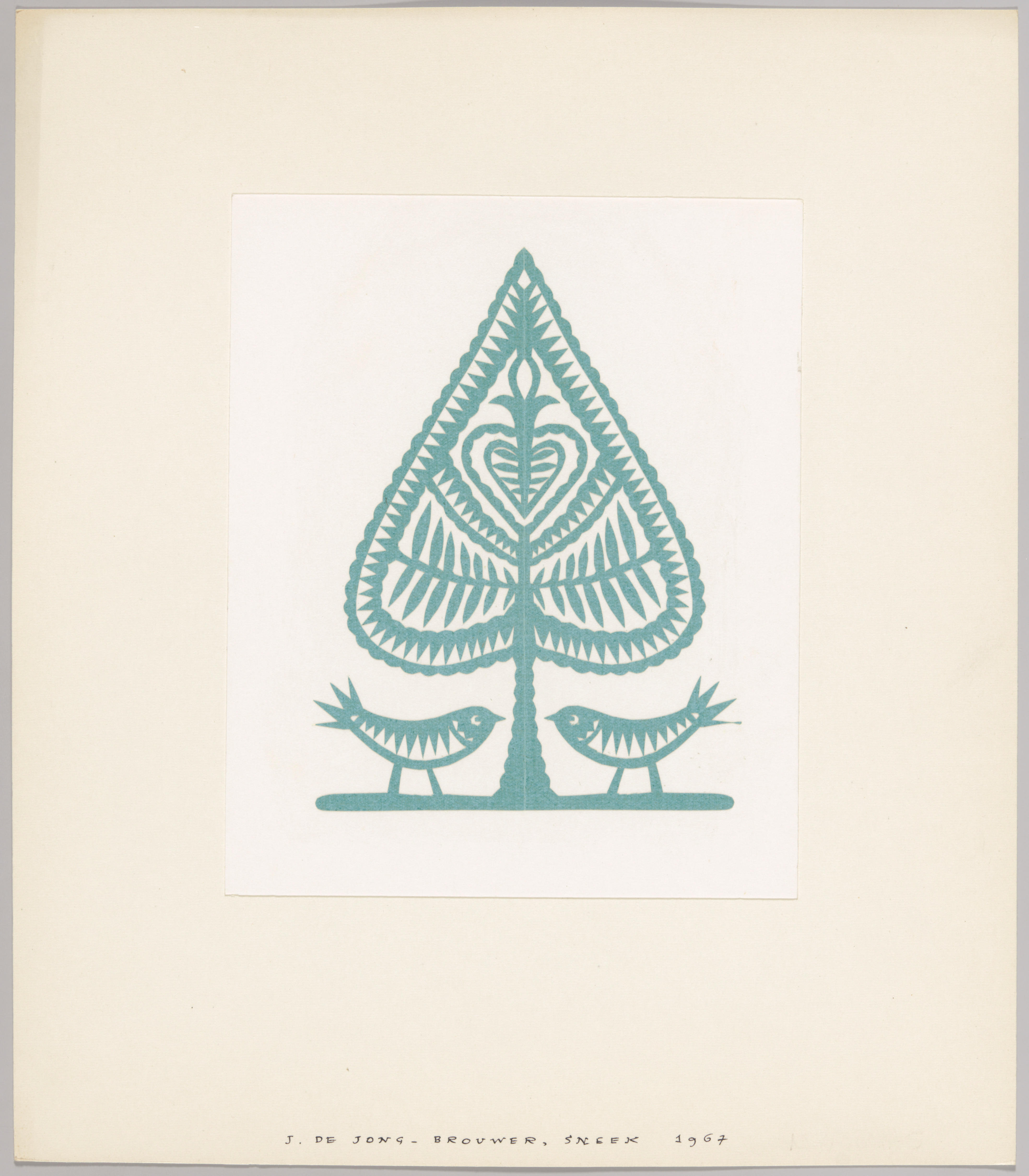 Knipwerk van een boom en twee vogels, Sneek, 1967