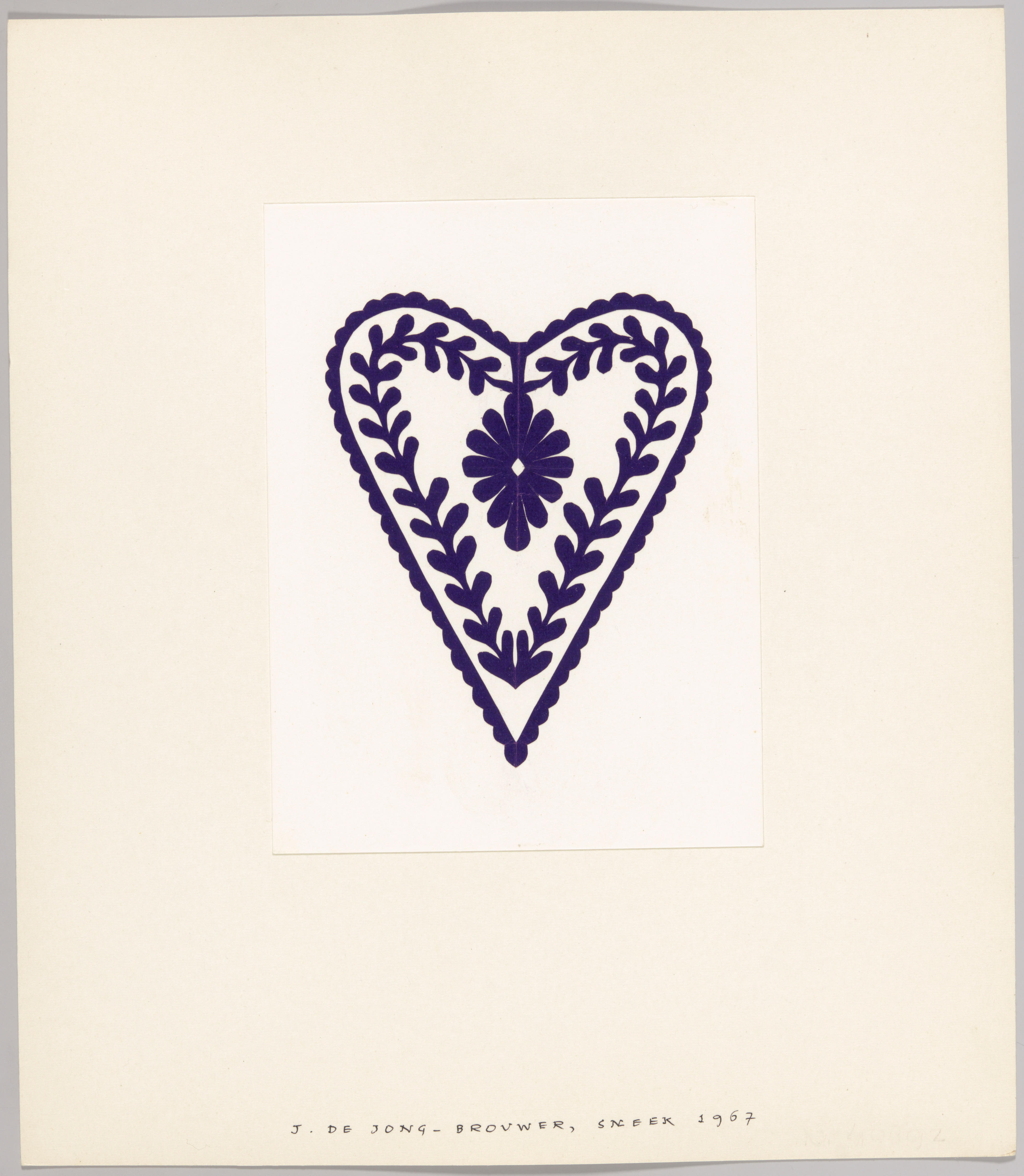 Knipwerk van een hart, bloem en twee pauwen, Sneek, ...