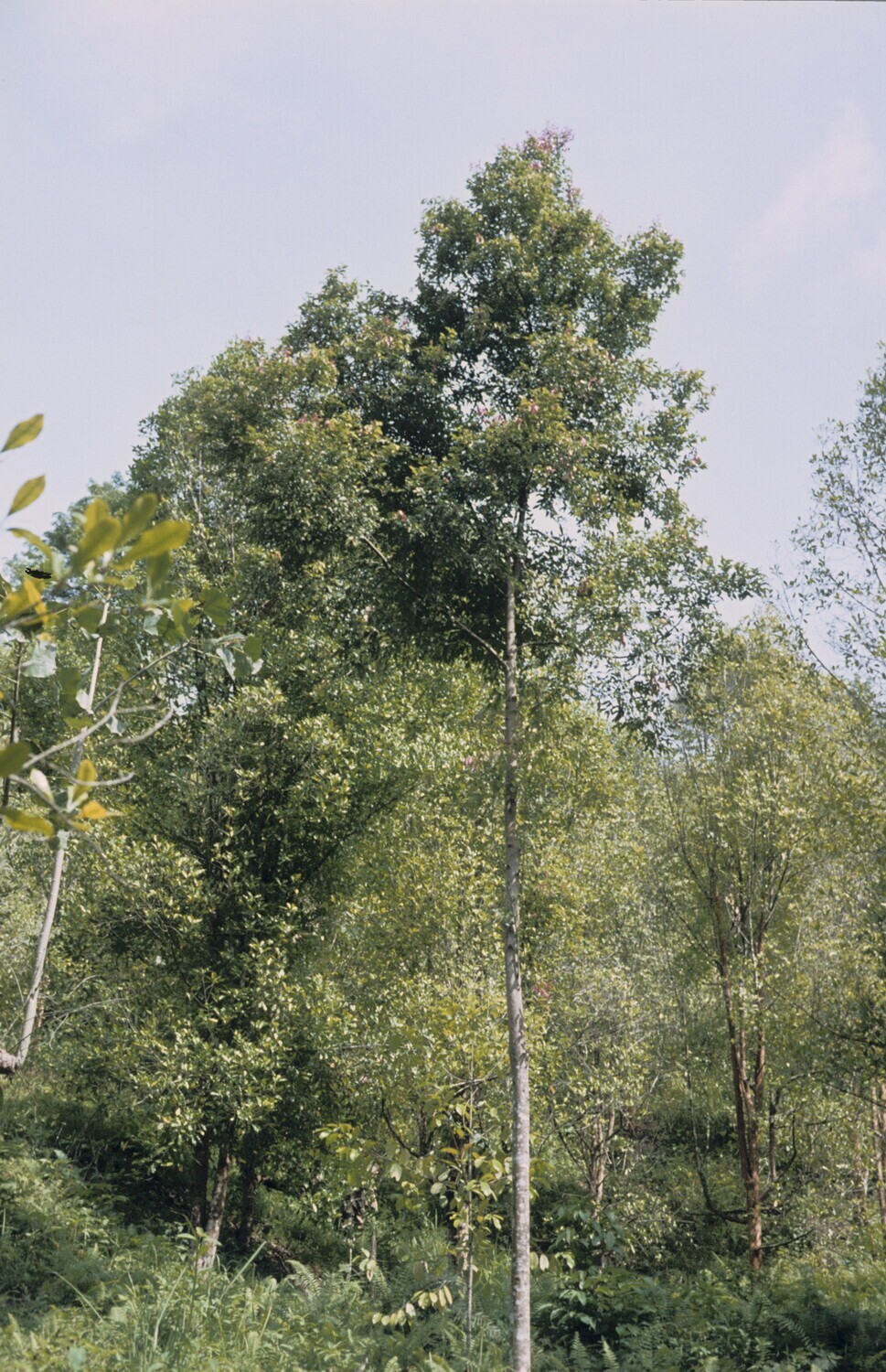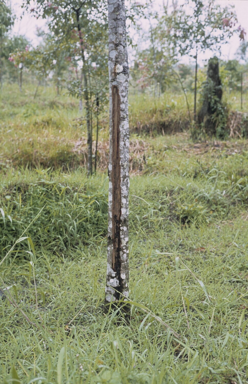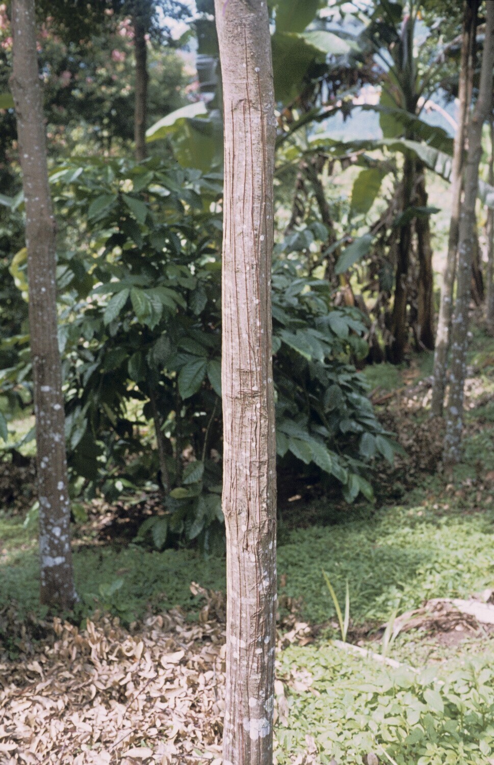 Afgestorven nootmuskaatboom. Let op de typische vert...