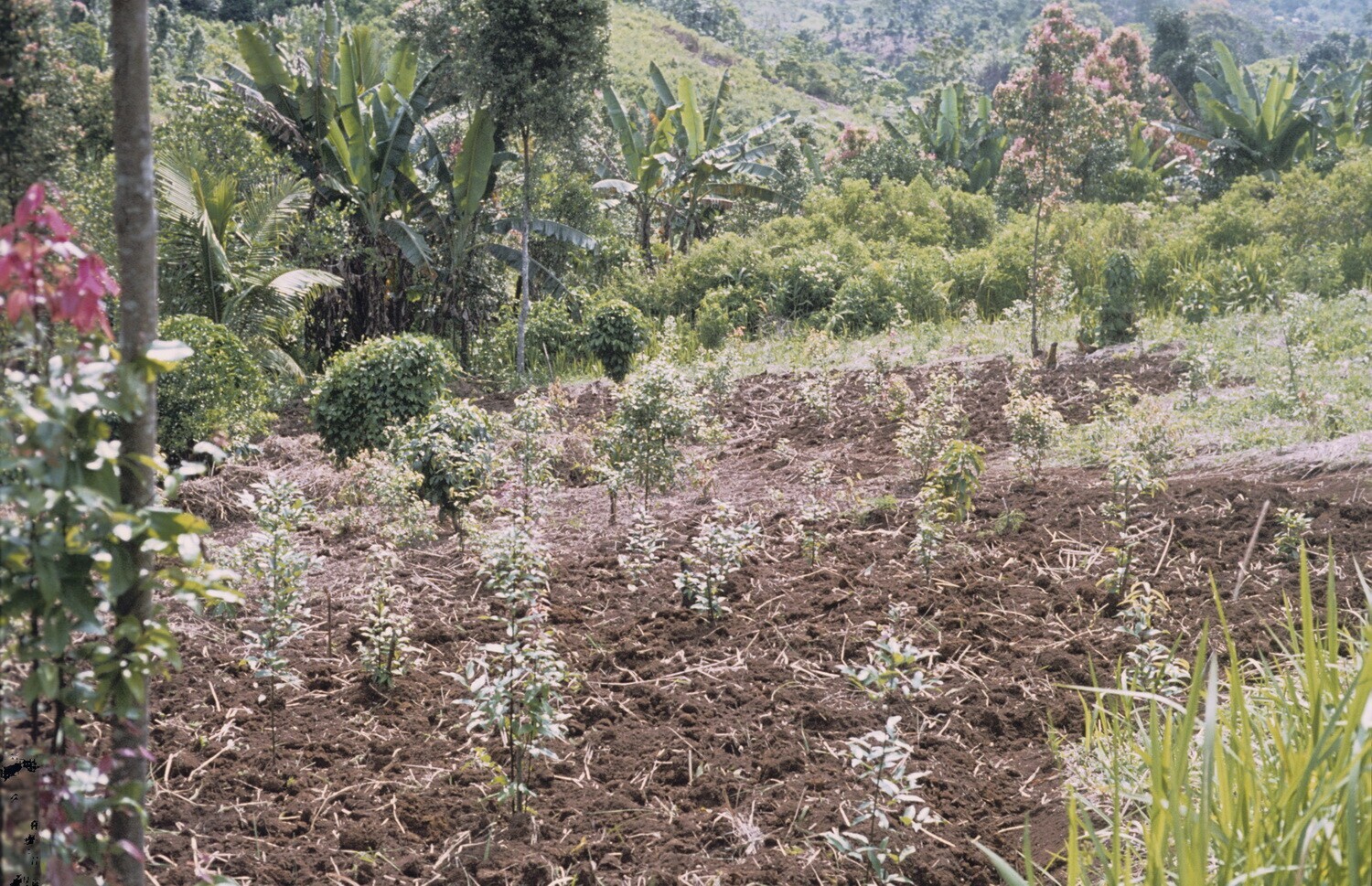 Zaaibed voor kaneel. Let op schaduwdak van alang-alang.