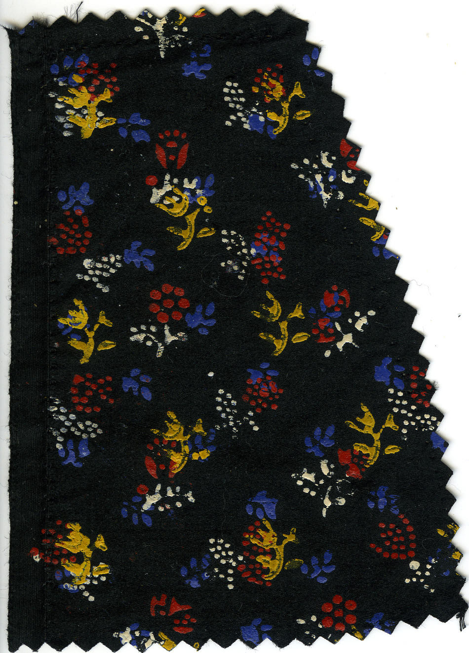 Zwart satijn met meerkleurig stipwerk, Staphorst, 19...