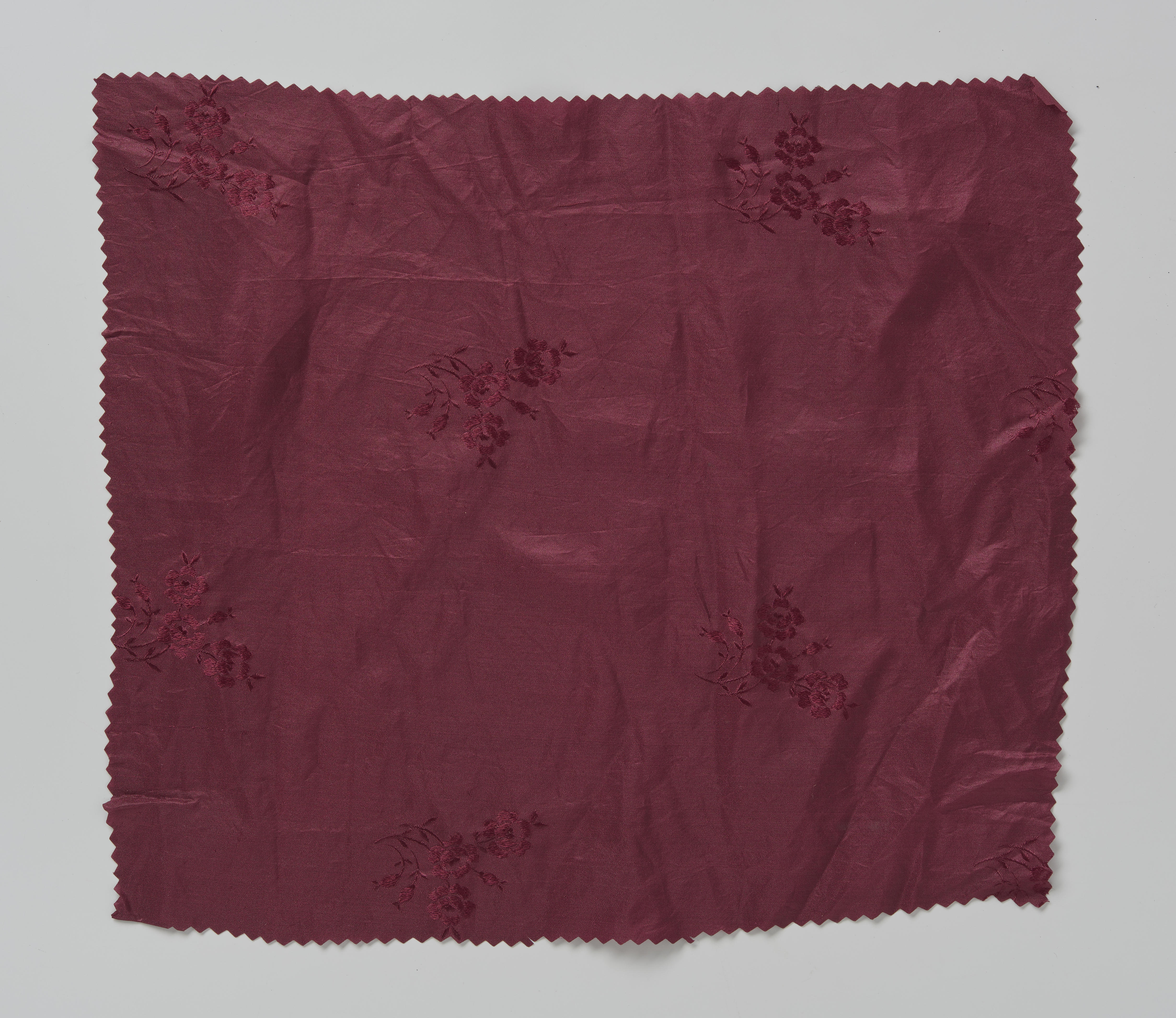 Donkerrode zijden japonstof, 1900–1917 (staal (monst...