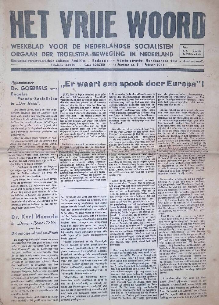 Het Vrije Woord, weekblad voor de Nederlandse Social...