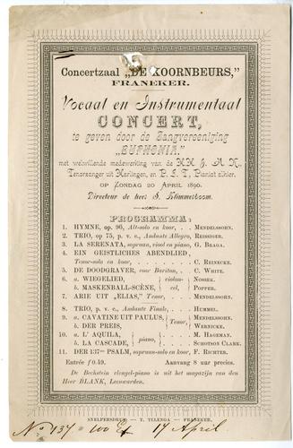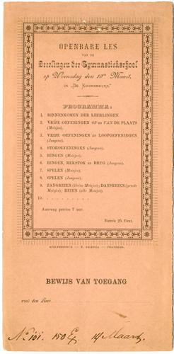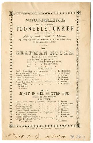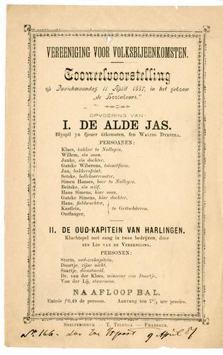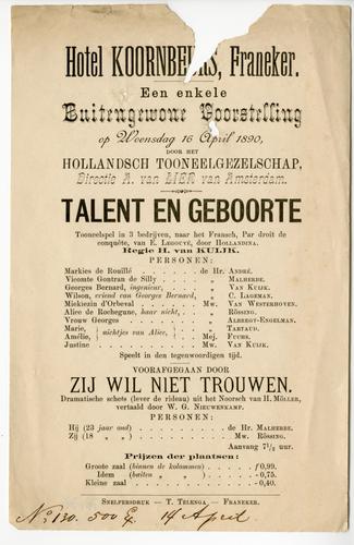 Programma van een toneelstuk, opgevoerd in de Koornb...
