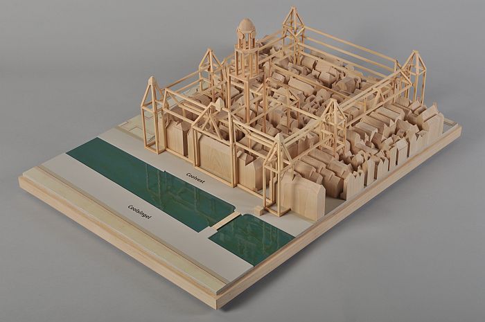 Maquette van de Zandstraatbuurt met draadmodel van h...