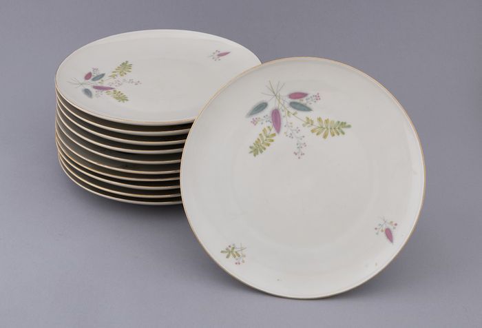Elf ontbijtbordjes van servies Jungerhans, beige met...