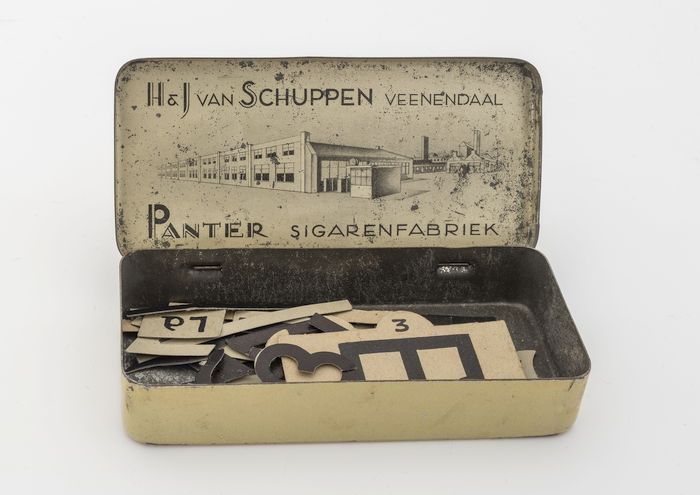 Metalen sigarendoosje met daarin leermiddelen van de...
