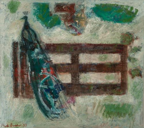 Pauw op het hek.