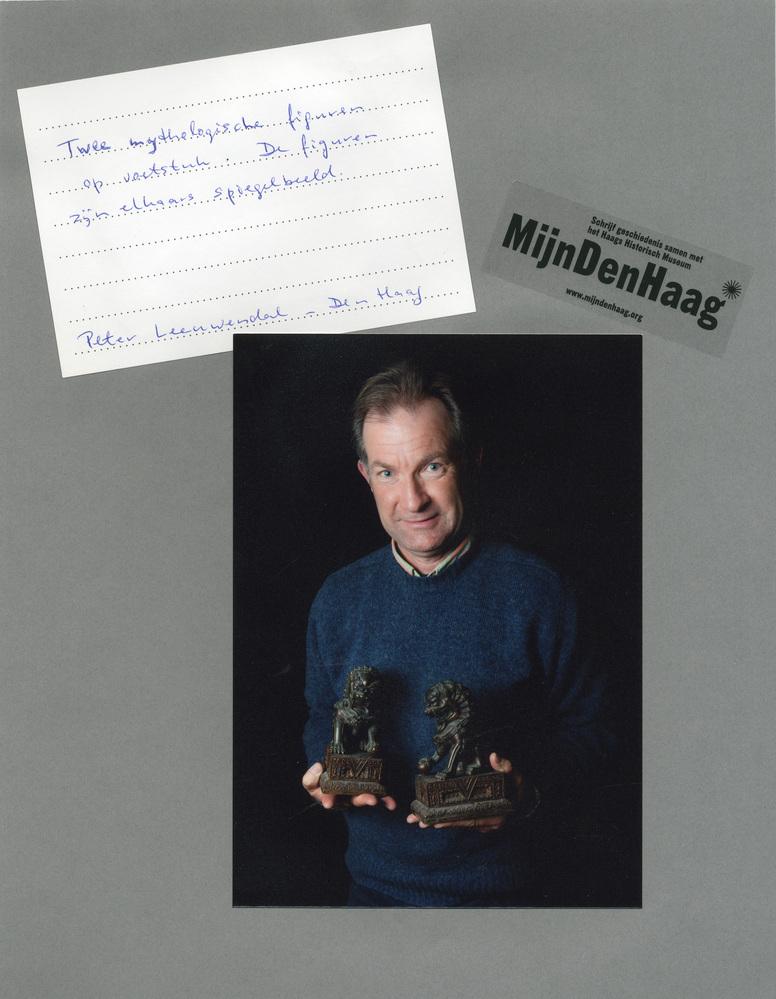 Het topstuk (twee mythologische leeuwenbeelden) van ...