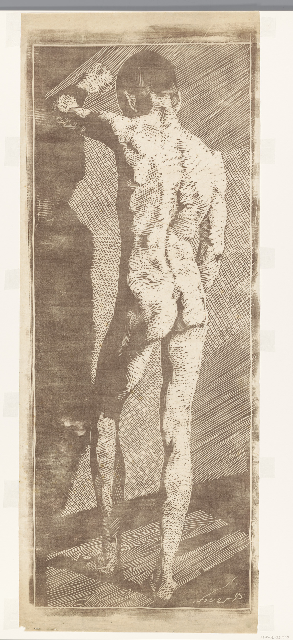 Staande jongen, op de rug gezien